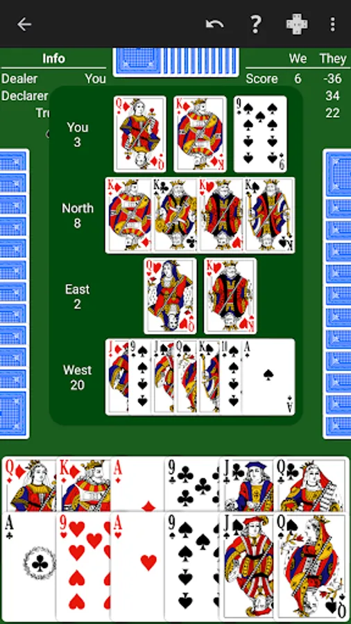 • Bid and play checker. Let the computer check your bid and play throughout the game and point out differences. Great for learning!