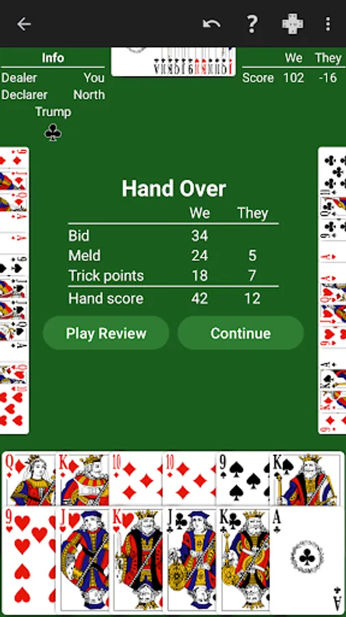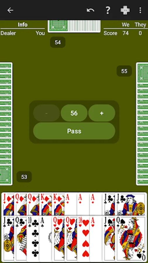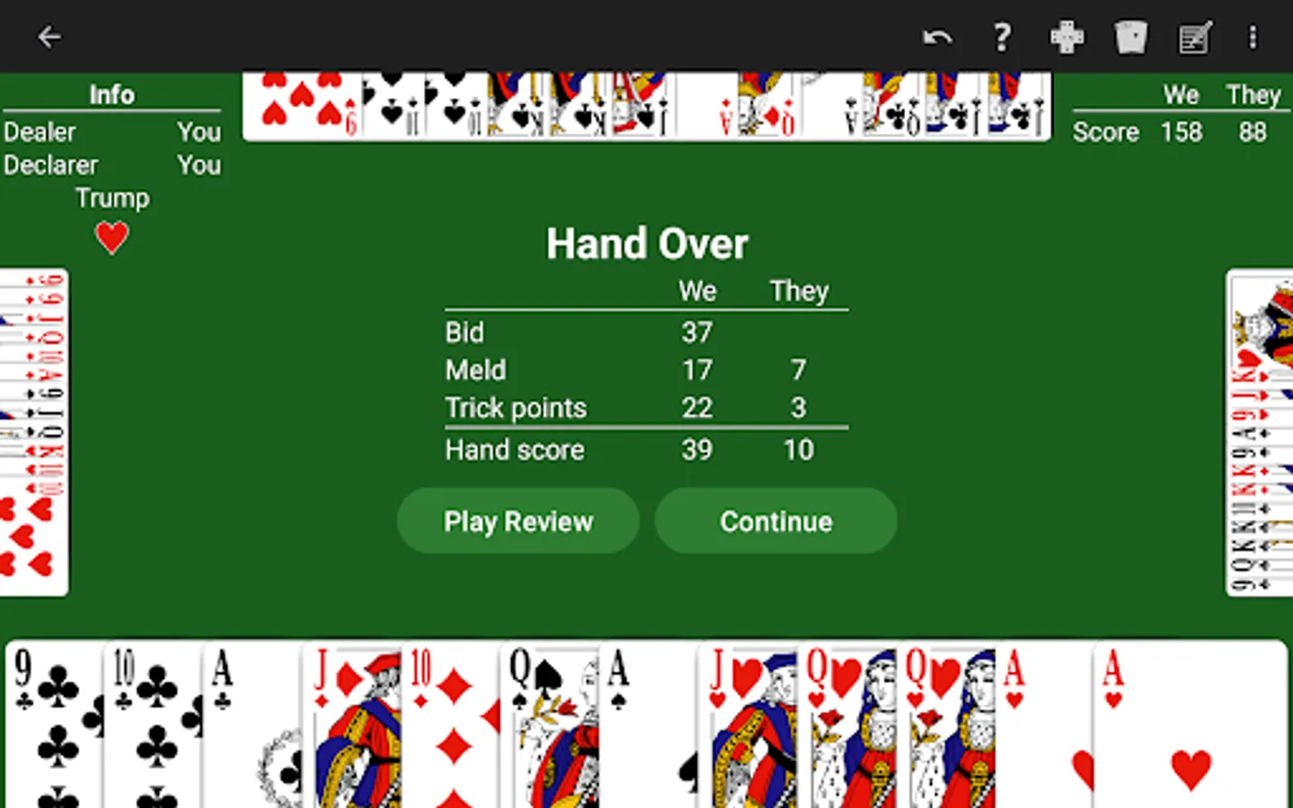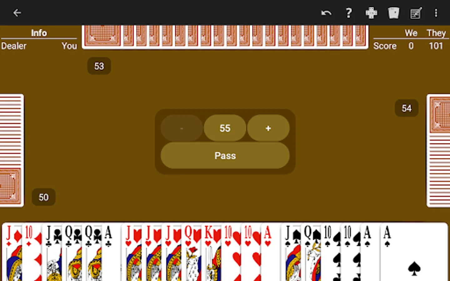 Just learning Pinochle? The NeuralPlay AI will show you suggested bids and moves. Play along and learn!