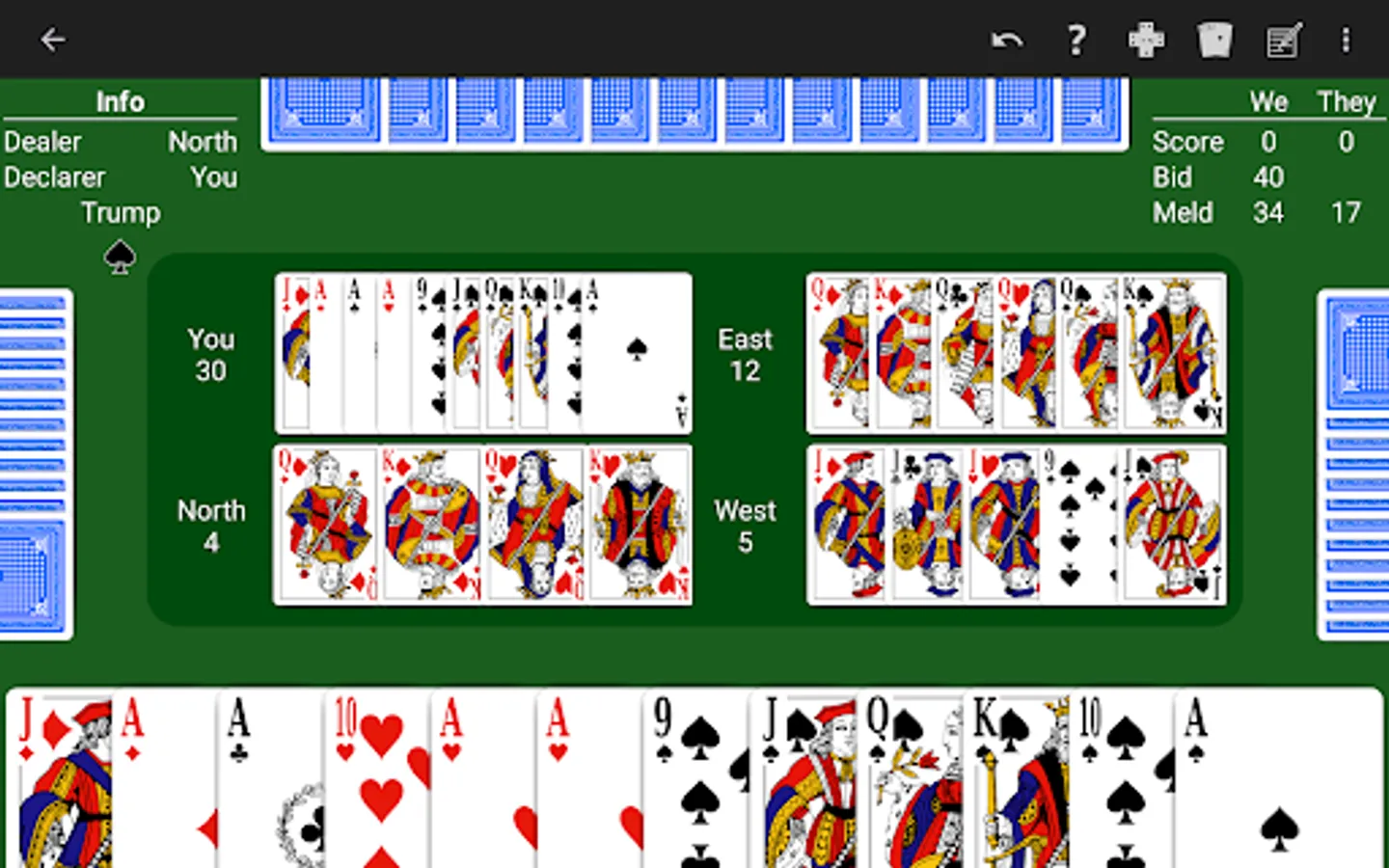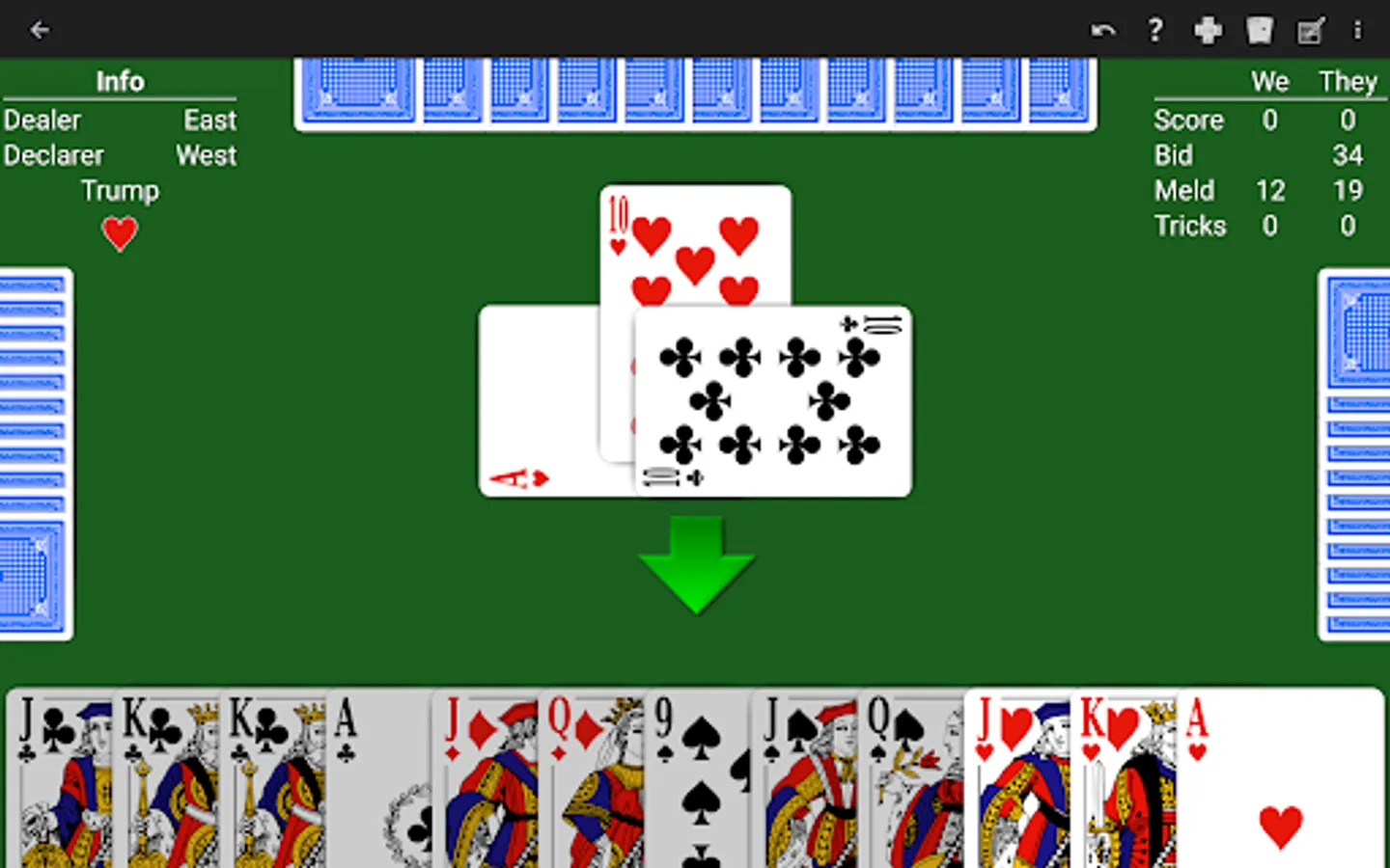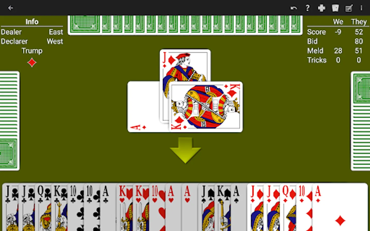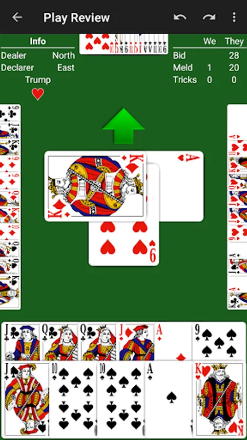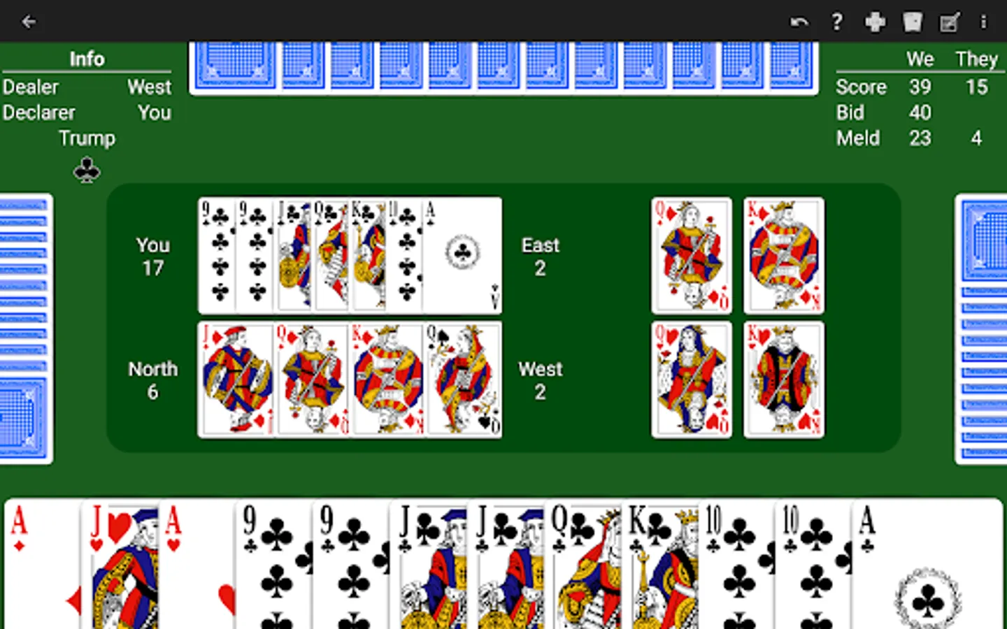 • Meld bidding. Convey your approximate meld points to your AI partner with jump bidding.
