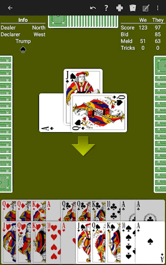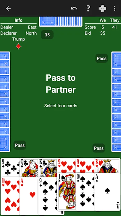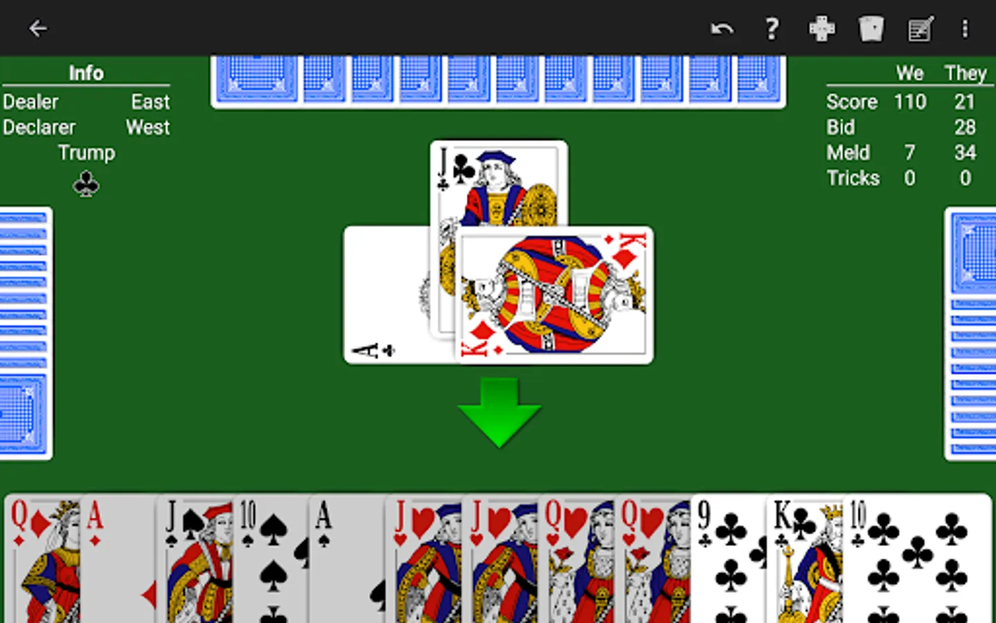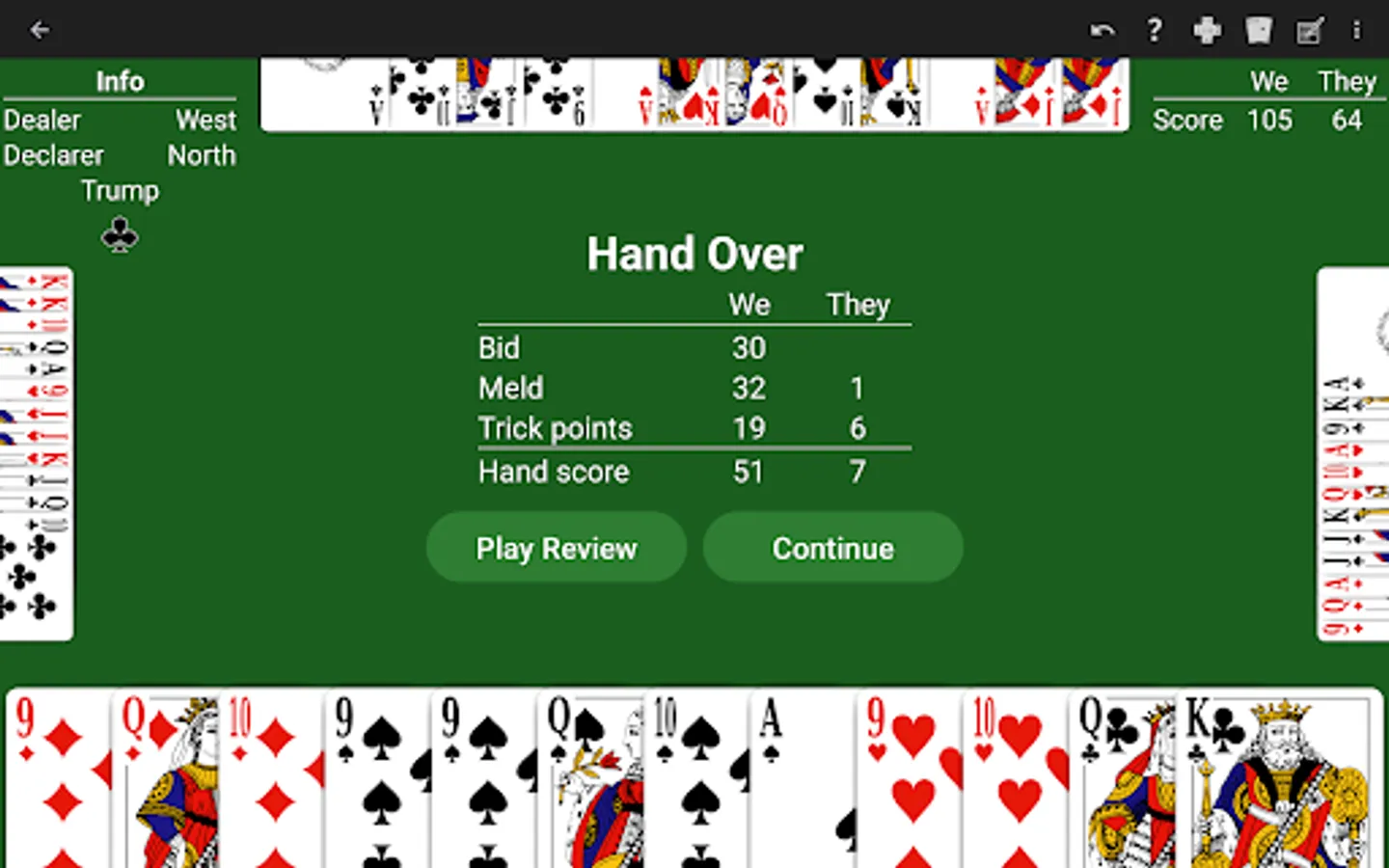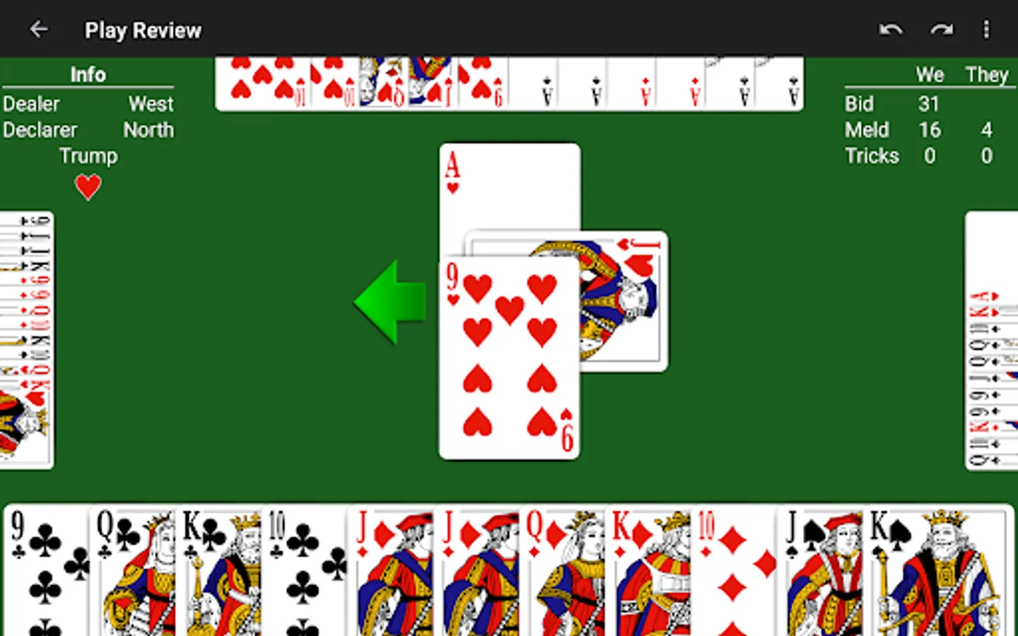 • Meld bidding. Convey your approximate meld points to your AI partner with jump bidding.