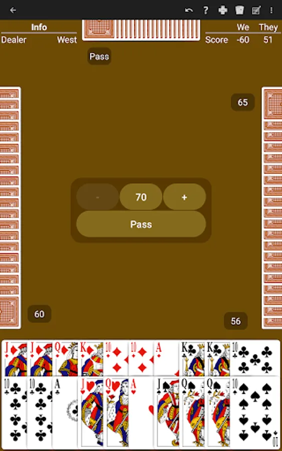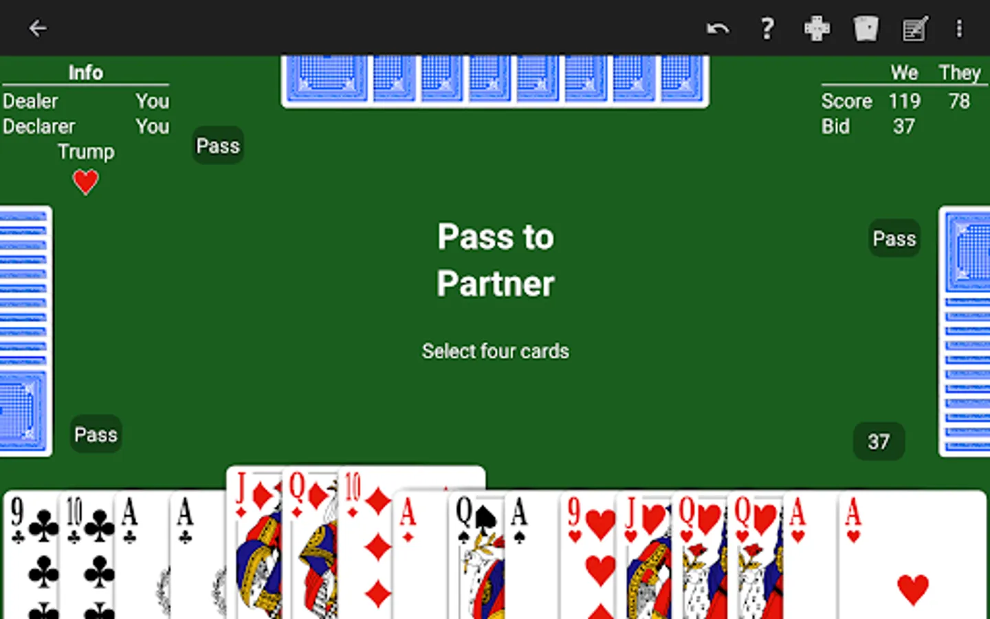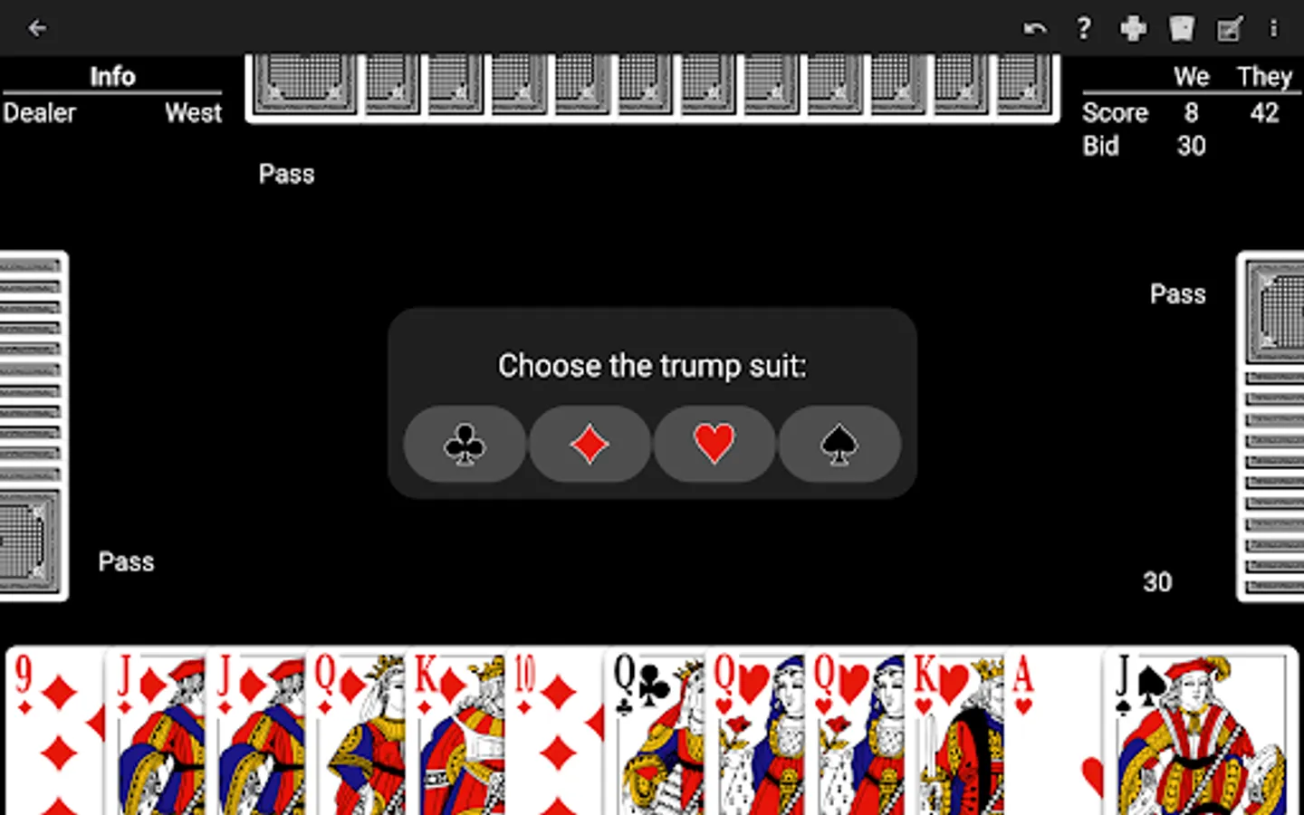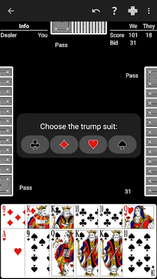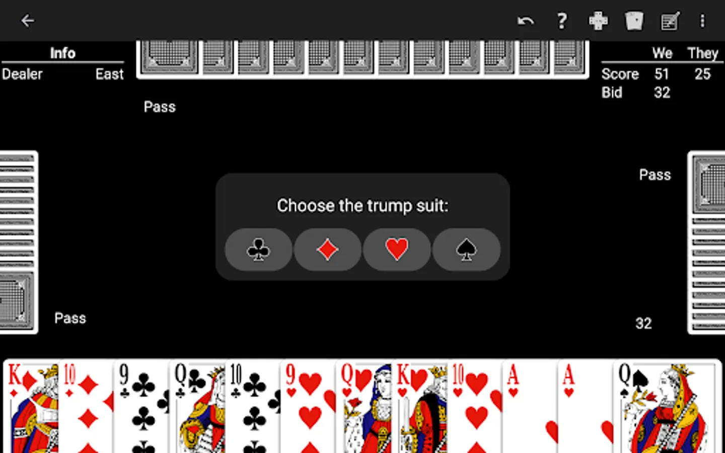 • Meld bidding. Convey your approximate meld points to your AI partner with jump bidding.