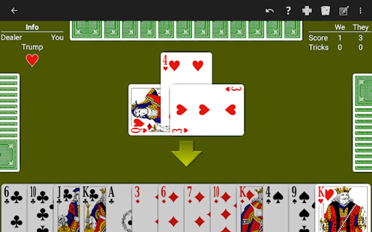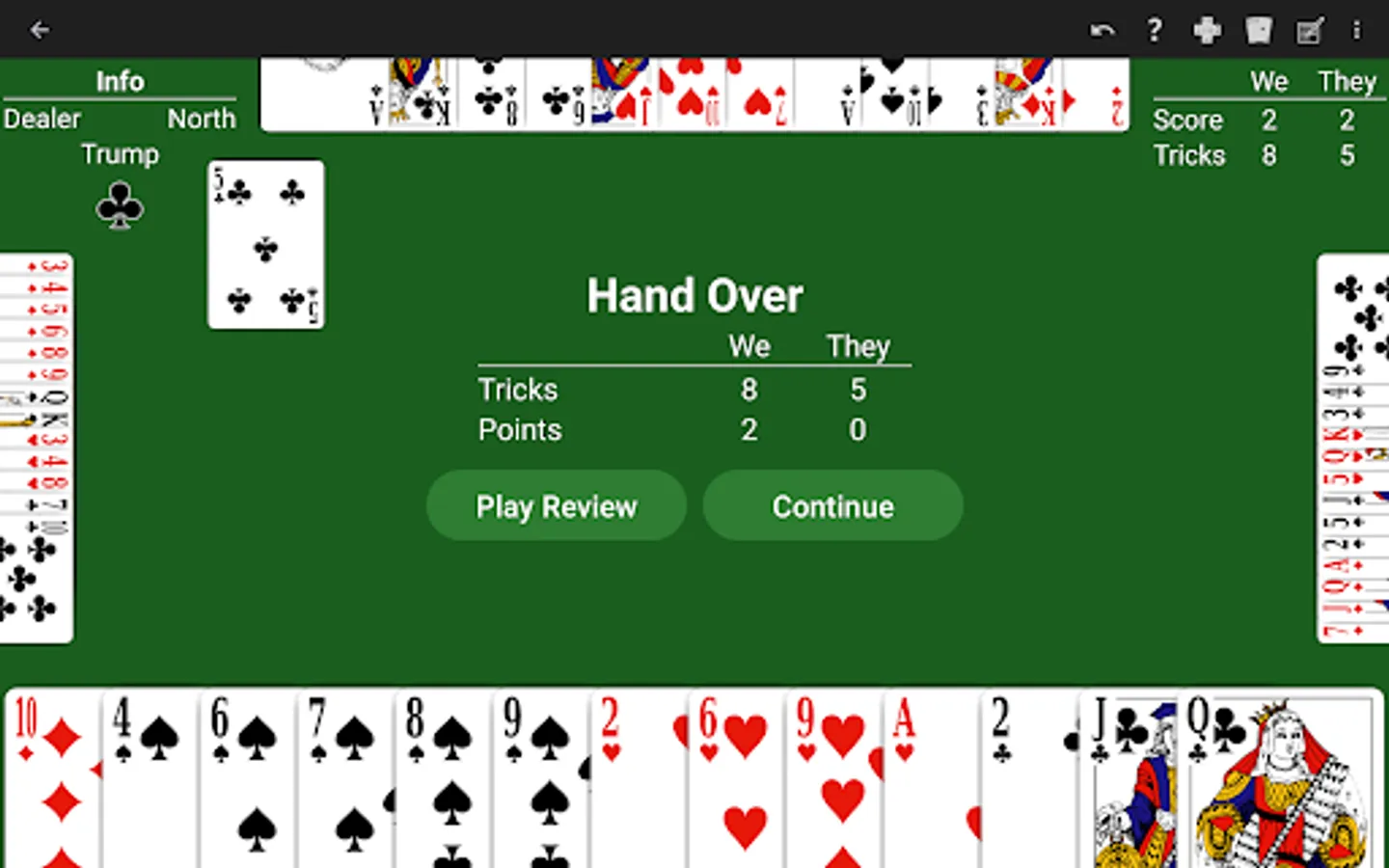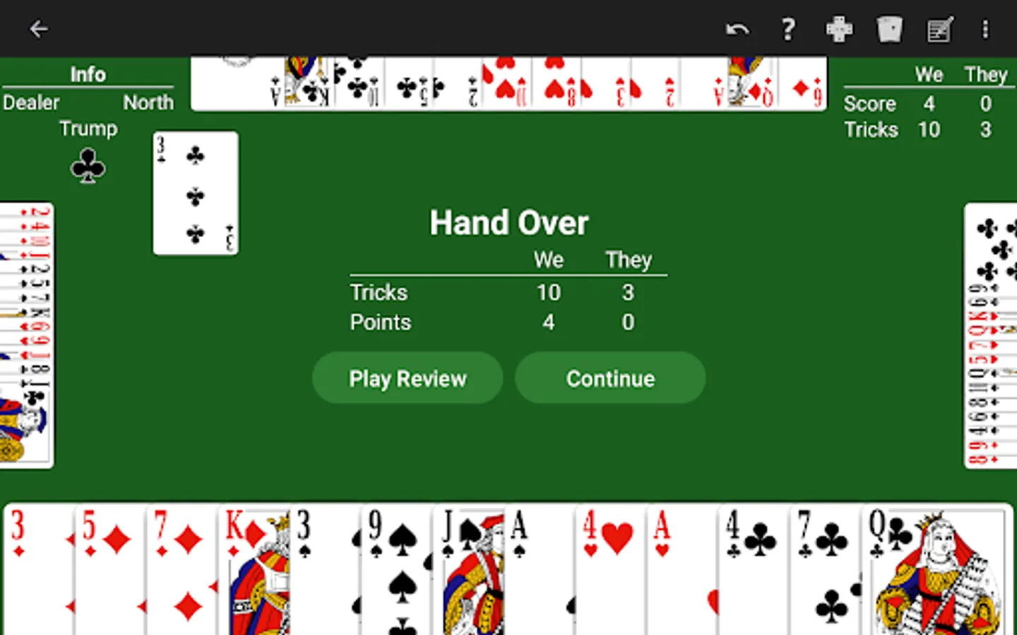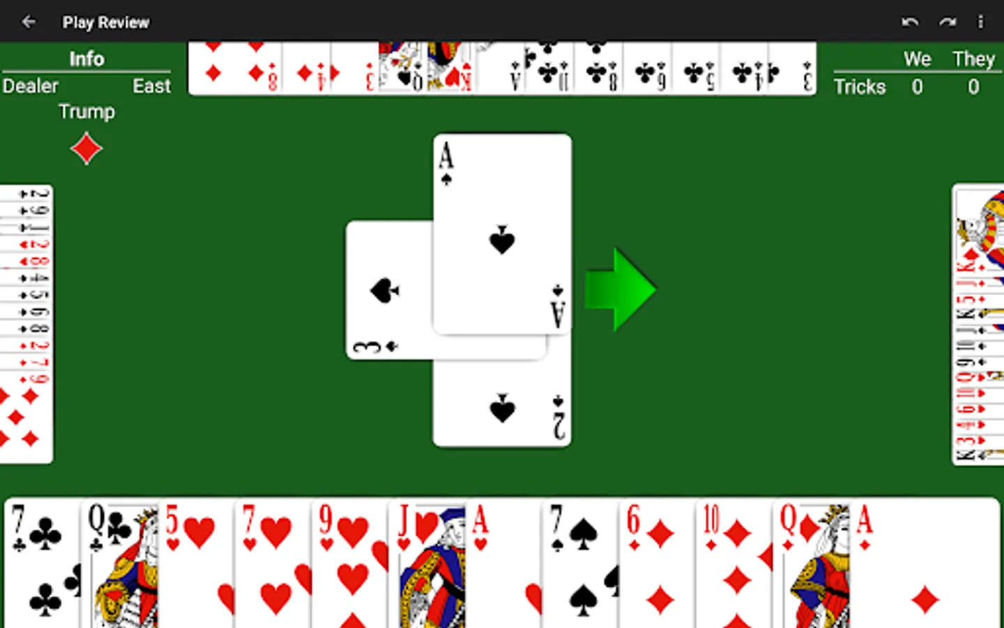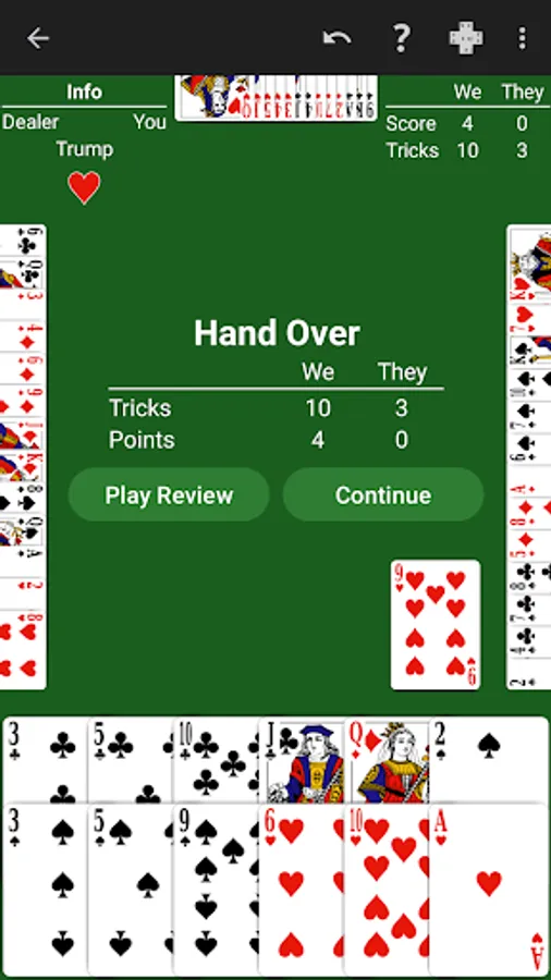 Just learning Whist? The NeuralPlay AI will show you suggested plays. Play along and learn!