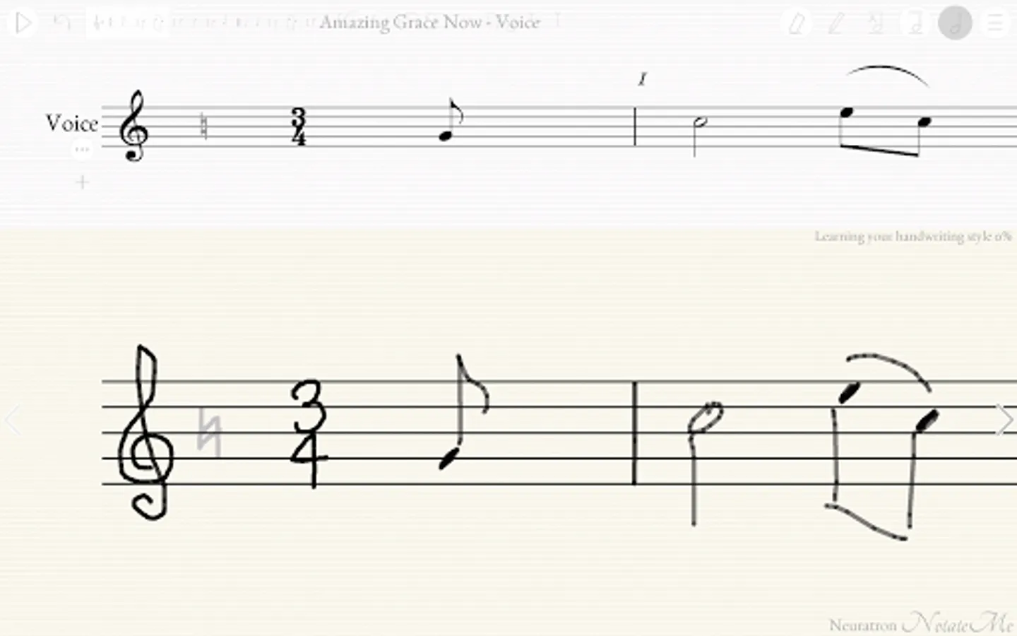 Free single-staff version of NotateMe - the ground-breaking music composition and music notation software from Neuratron, with handwriting recognition plus PhotoScore Now printed sheet music capture (using your device's camera!).