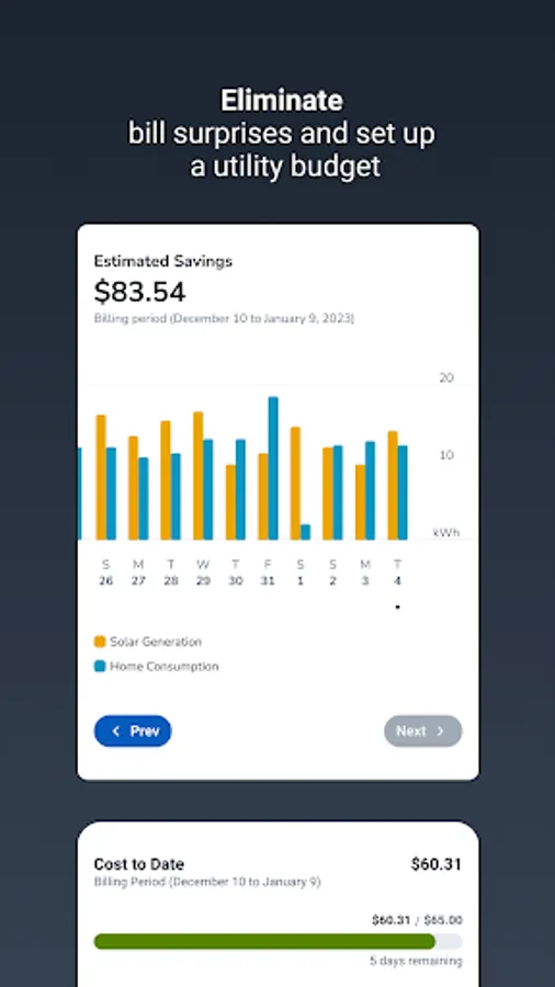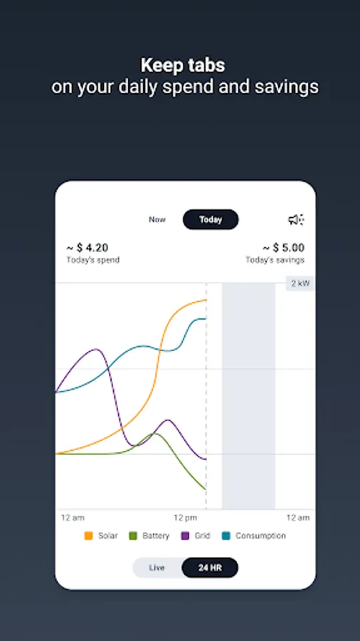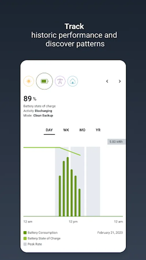 • Discover patterns in your consumption, solar generation, grid, and battery usage