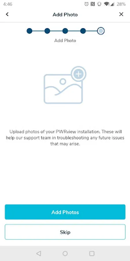 - Installation photos: Upload photos of your installation to the app for future reference and to help with customer support.