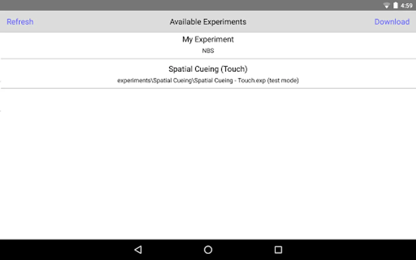 Run Presentation experiments on Android devices. Design, program, and test your experiments on Presentation for Windows. Then, use the Presentation Android app to run experiments and collect data on mobile devices. For more information and instructions, visit Neurobehavioral Systems at neurobs.com.