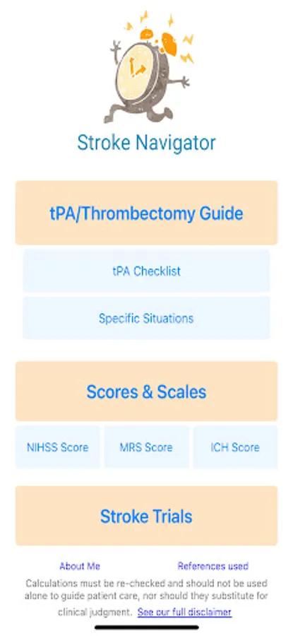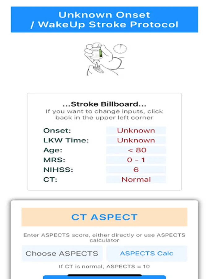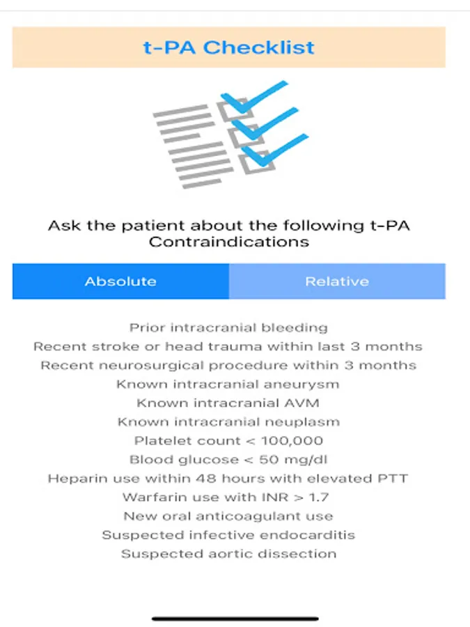 The first of kind mobile application to guide you (ED physician or neurologist) with a step-by-step approach through the tPA/thrombectomy decision making.