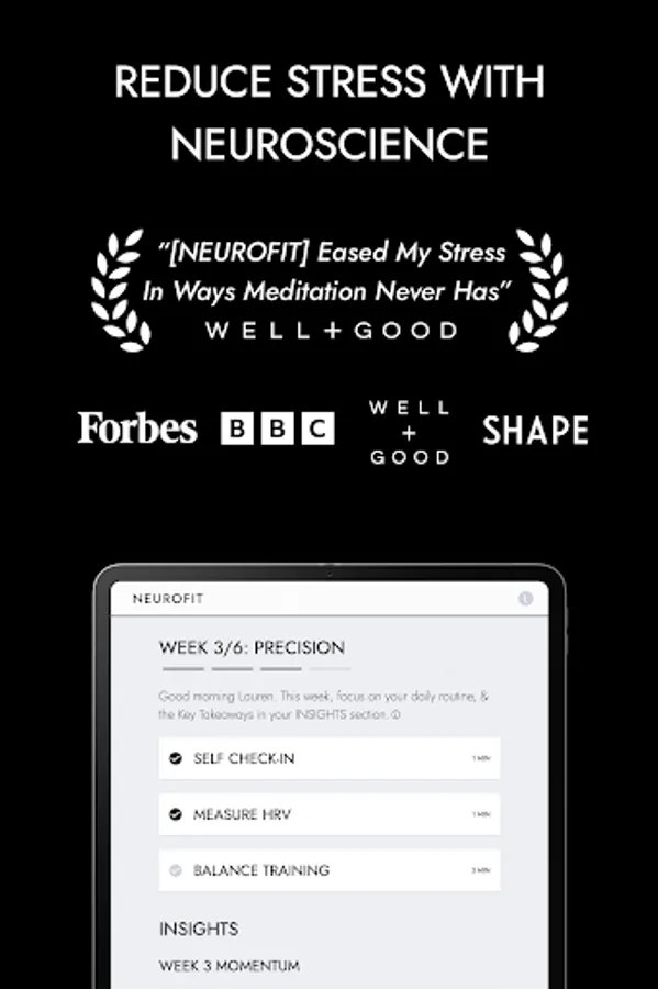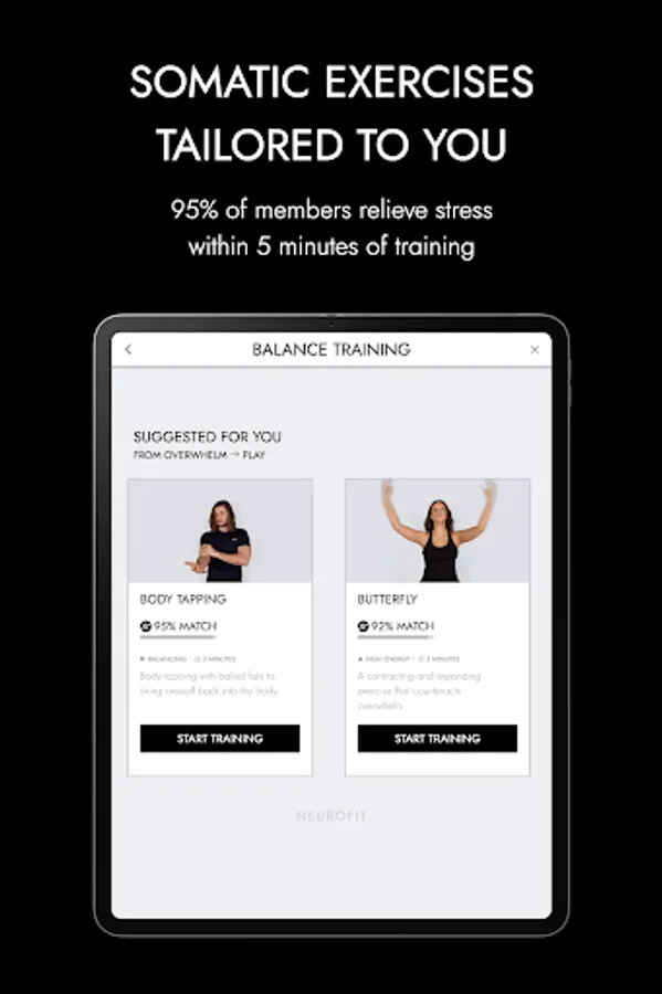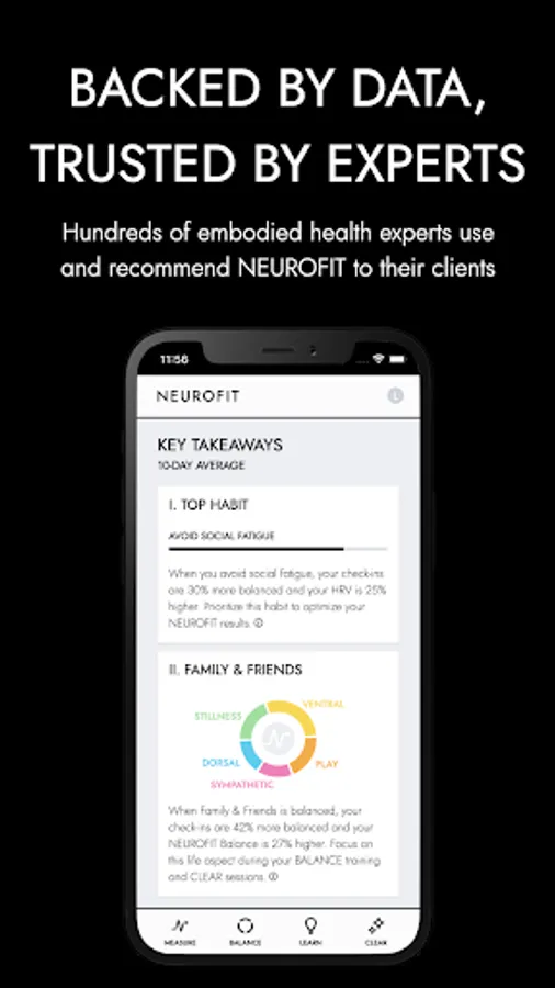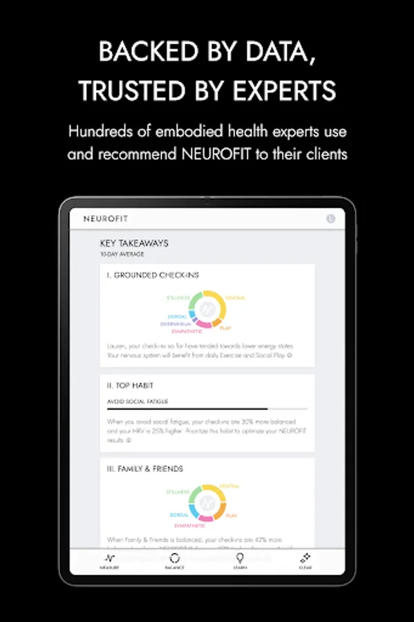 NEUROFIT™ is a neuroscience-based wellness app that's backed by data and used by embodied health experts.
