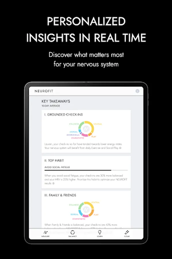 NEUROFIT also allows you to track your habits and improvements over time - you’ll receive personalized insights that help optimize your nervous system and maximize results.