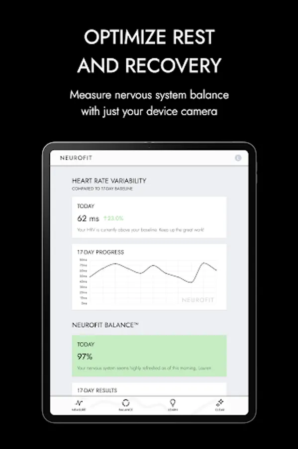 NEUROFIT's technology doesn’t require any wearables to track your progress. Take a reading in just over a minute using only your phone’s camera.