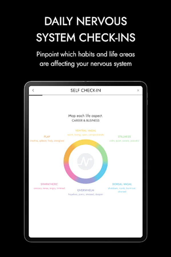 Check-in with your nervous system daily, identify key areas of focus and measure biometric data including: