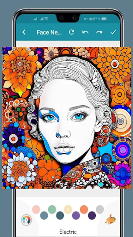 3. Rich palette and tools: We offer you a huge selection of paints, brushes and palettes so that you can create real works of art. You can play with colors, add your own colors and create unique portraits to make each face unique.