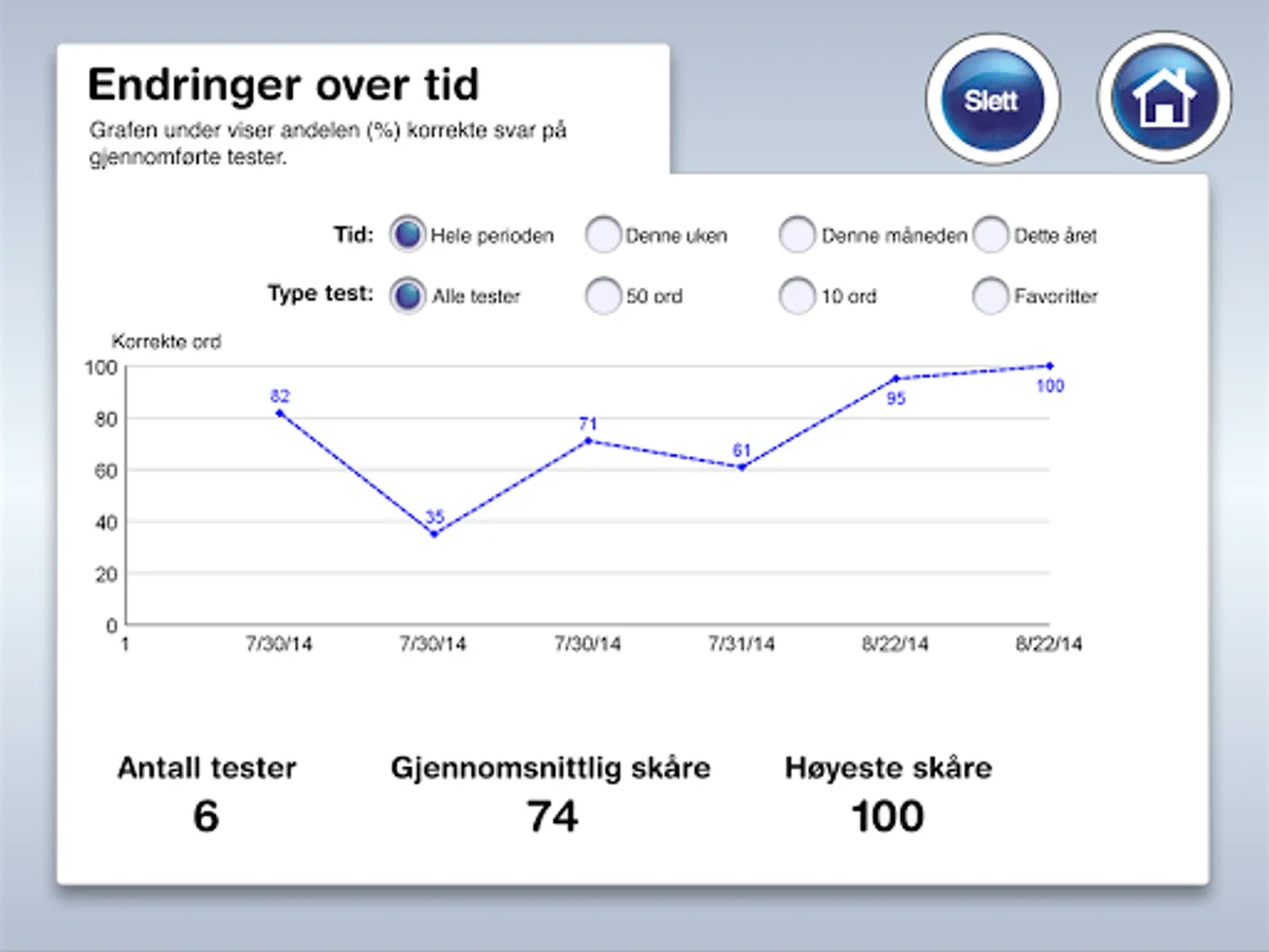 • Test Function: Test progress of 10 words, 50 words or your favorite words