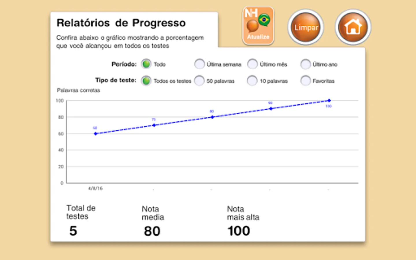 Progress reports: follow the patient's progress showing the results for the period and type of test.