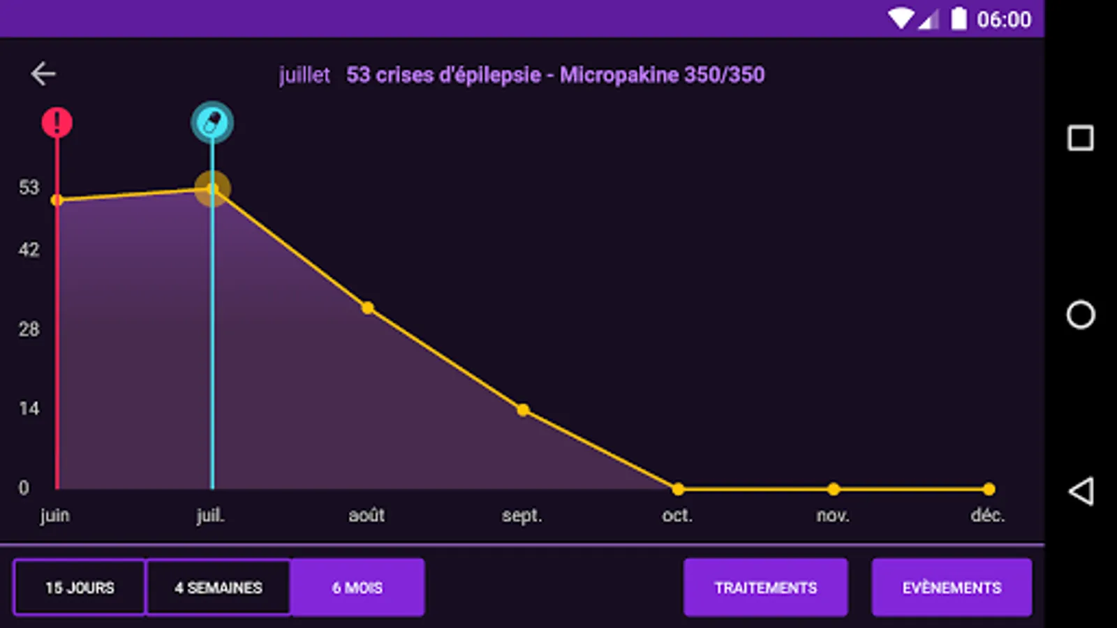 Follow in a simple and reliable way the evolution of the number of epileptic seizures according to the medical treatments administered: