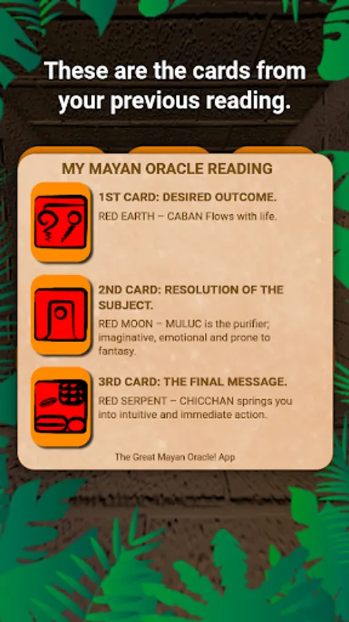 The Great Mayan Oracle is a mobile application based on the Tzolk'in, the Maya Sacred Round or 260 day calendar.