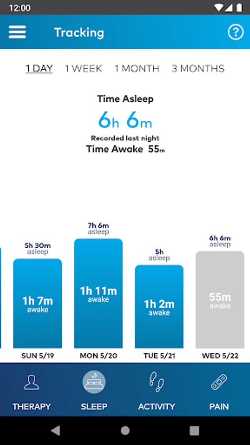 • You will be able to track your therapy, sleep, activity and pain levels. You will be able see up to two years of data at intervals from 1 day to 3 months.
