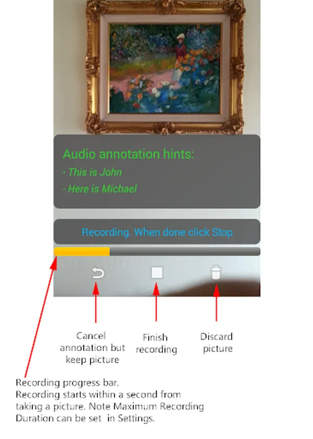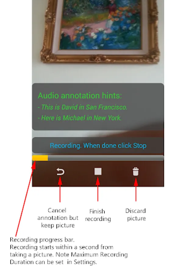 Voice Annotation and Re-annotation: If you have skipped the annotation after taking a picture, or you want to voice-annotate or re-annotate pictures even if taken by other apps (JPEG pictures), then no problem, you can voice-annotate old pictures or voice re-annotate already annotated pictures.