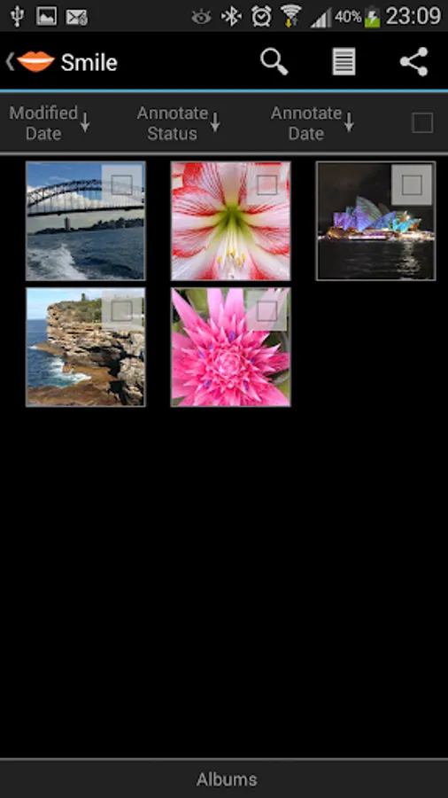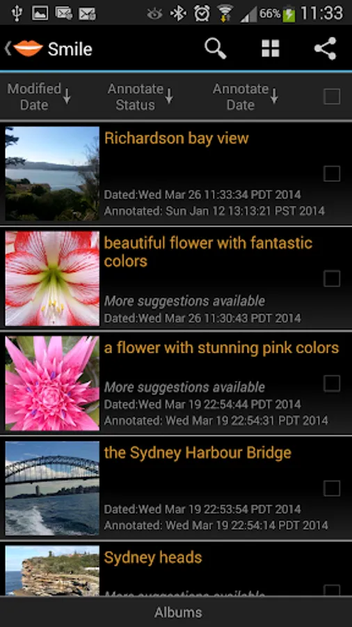 Editing and Viewing Annotations: You can edit annotation text, view annotation suggestions, and/or create and add text annotation to any JPEG pictures, whether taken using Smile or any other camera app, or actual camera.
