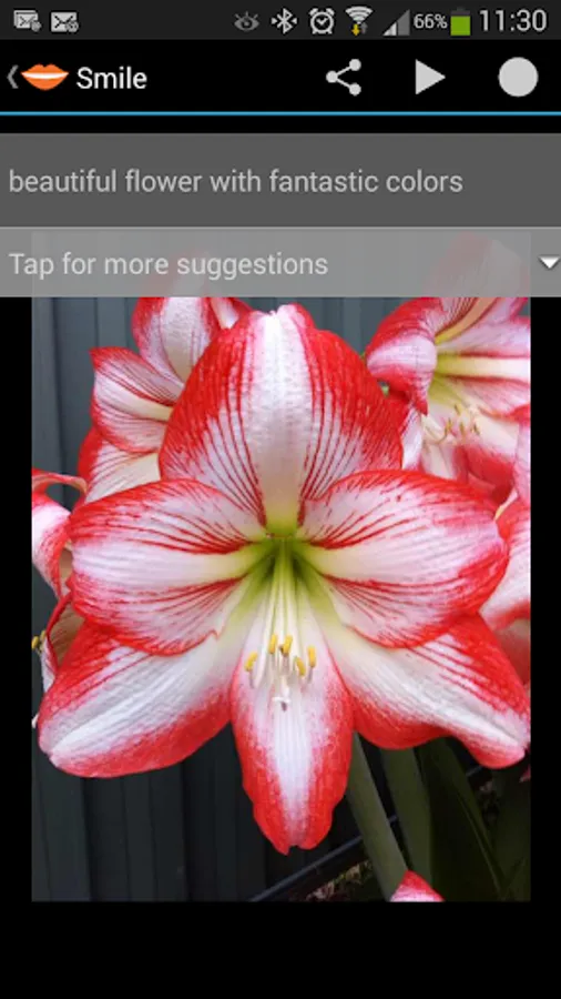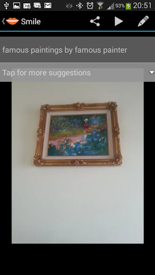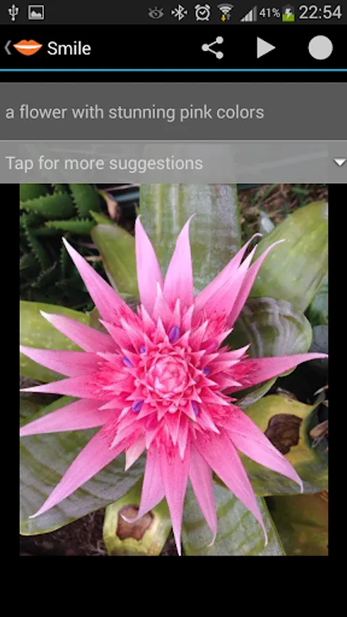 Smile speech recognition automatically generate multiple suggestion. You can pick a suggestion, edit, or enter a new one. With Smile you can even go through old pictures, or pictures taken using other apps or cameras, annotate them or voice-tag them and text annotation will be extracted using speech recognition. No need to type on your smartphone keyboard!!