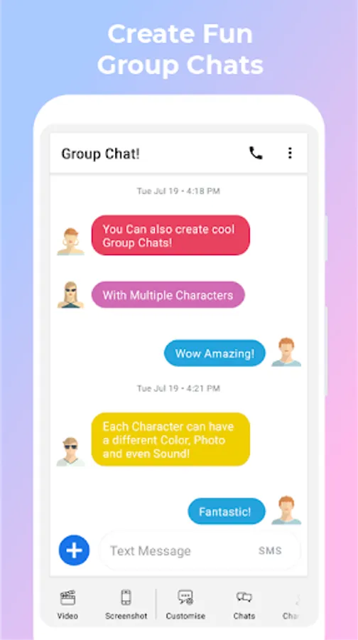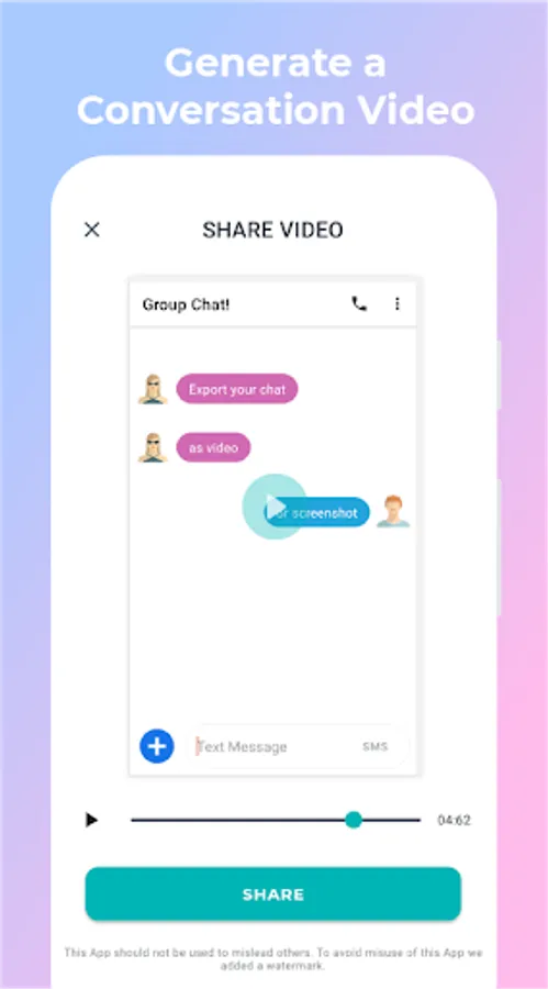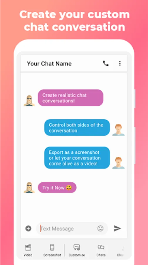 Text Message Creator is a chat story maker used by over 5 Million people around the Globe! The app enables you to turn your chat conversations into videos or screenshots, controlling the narrative on both sides of the story. With multiple themes to choose from you can make your chat story come alive.