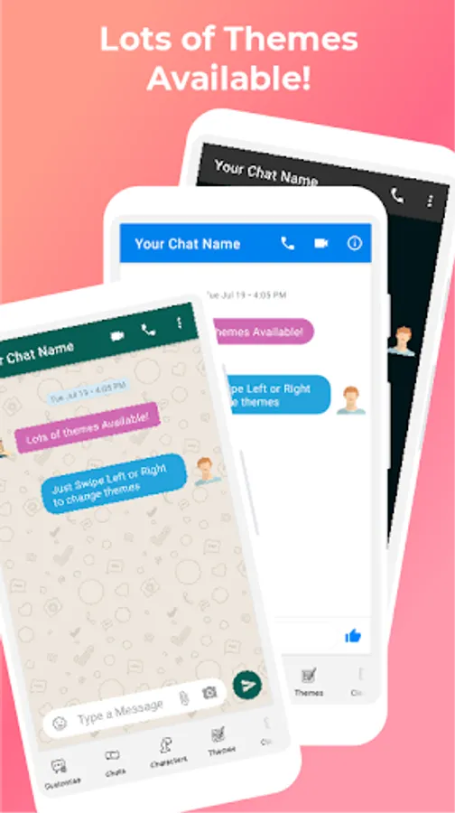 Text Message Creator allows you to show your chat story in different themes. Just swipe right or left to switch themes, and Text Message Creator will keep your same chat story saved.