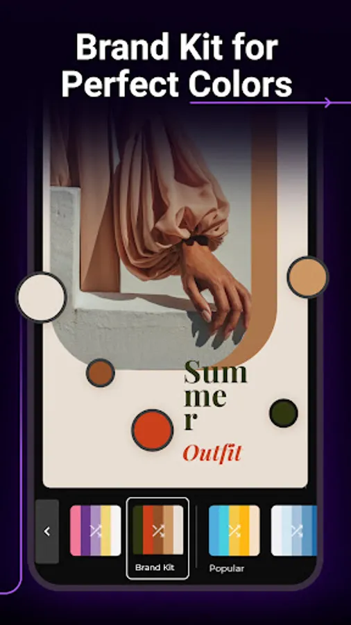 · Elevate your brand image by incorporating your brand colors. Try various branding concepts using our curated color palettes.
