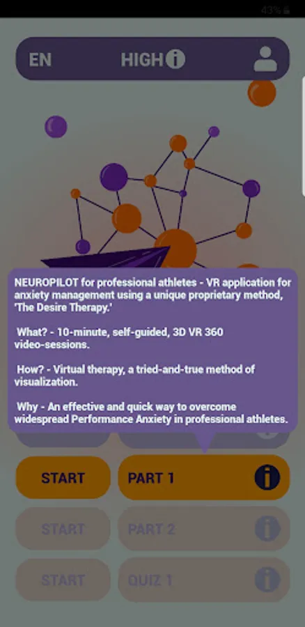The user chooses a familiar anxiety state, and with a 5-minute therapy session, starts an enjoyable anxiety treatment experience.