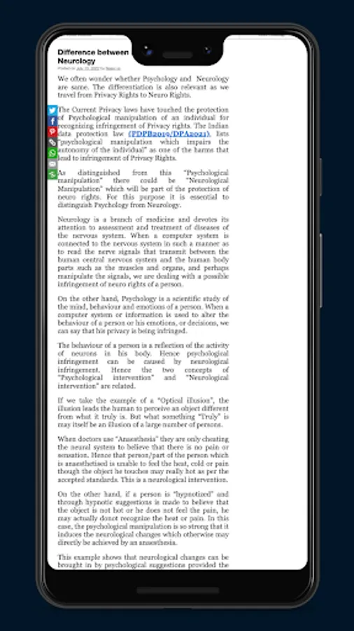 The App reflects the content in the website www.neurorights.in. The website is a compendium of publications of the author/owner of the app on the subject of Neurorights. Naavi as the owner is popularly called is a pioneer in the field of Cyber Laws and Data Protection in India.
