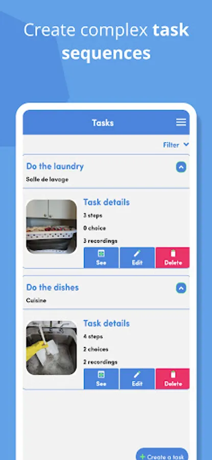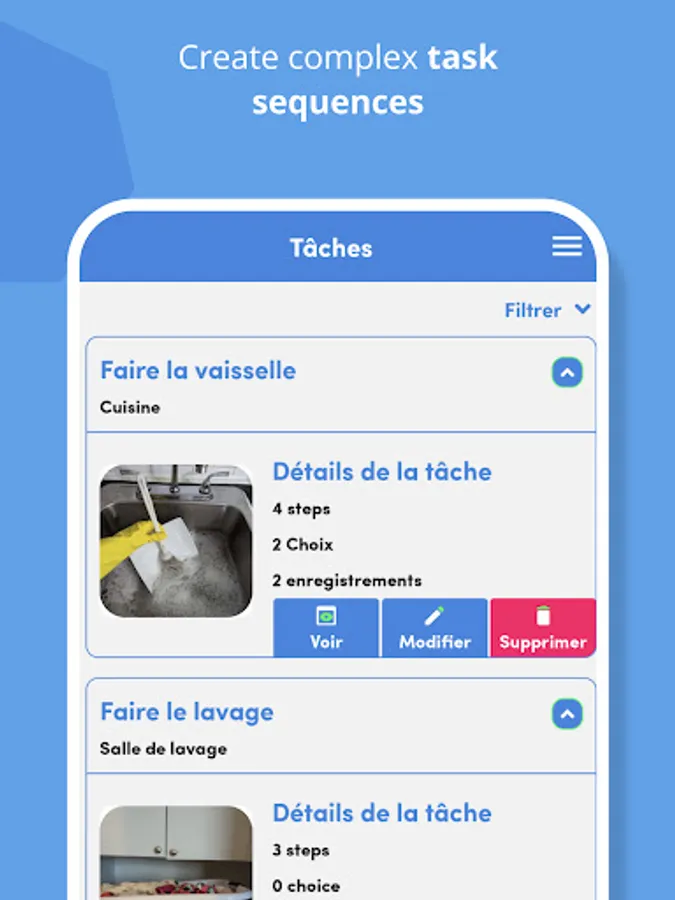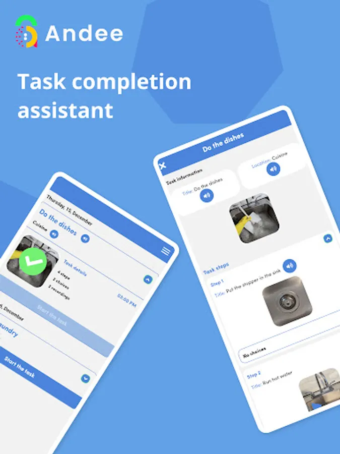 Andee assists users in carrying out their tasks in a work context or at home. The supervisor adds tasks and details them step by step using photos, audio and videos. The overseer assigns tasks to users who will be able to view them in their respective schedules. The user is then more confident to learn and complete their tasks with consistency.