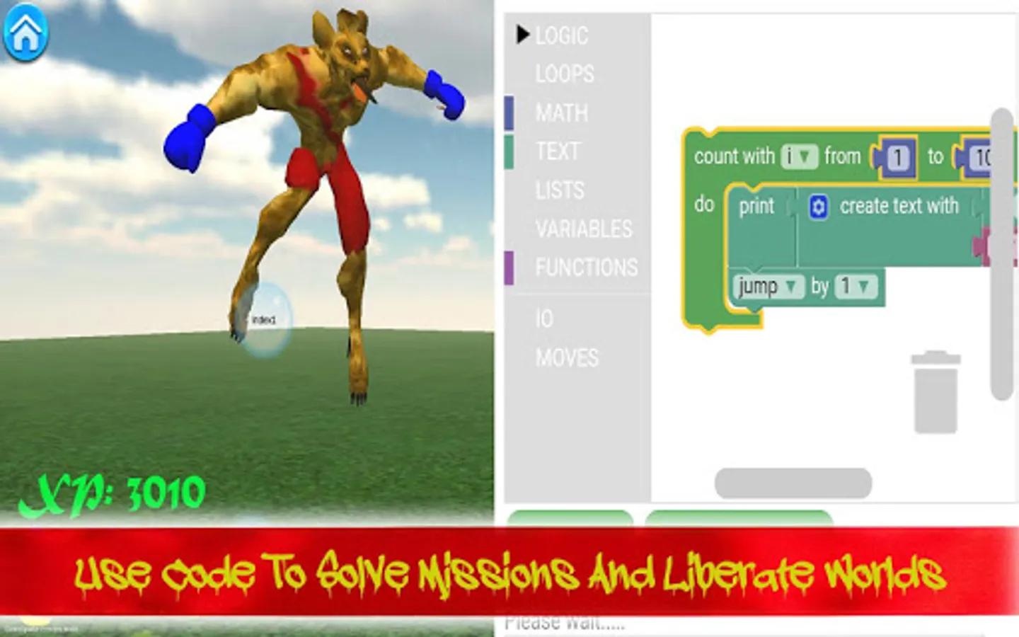 You must learn to code and apply your coding skills to save Earth-5. Help Laamaa and her friends by going from world to world and learning about: