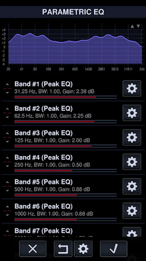 - Parametric Equalizer (4-60 band, fully configurable: type, frequency, Q, gain)