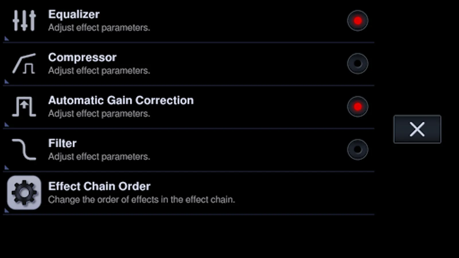 - Up to 60 band Parametric Equalizer for correcting the frequency response of the audio source (microphone)