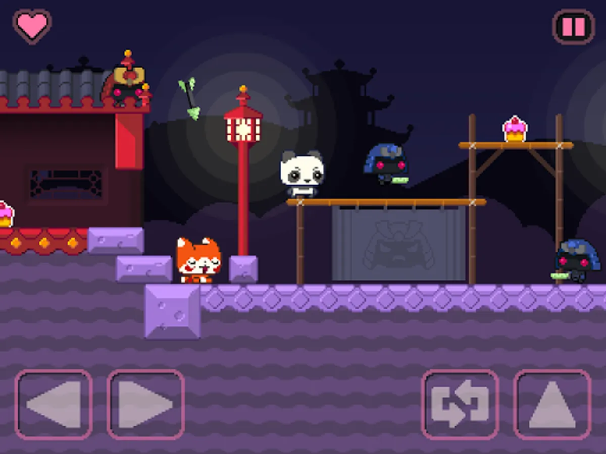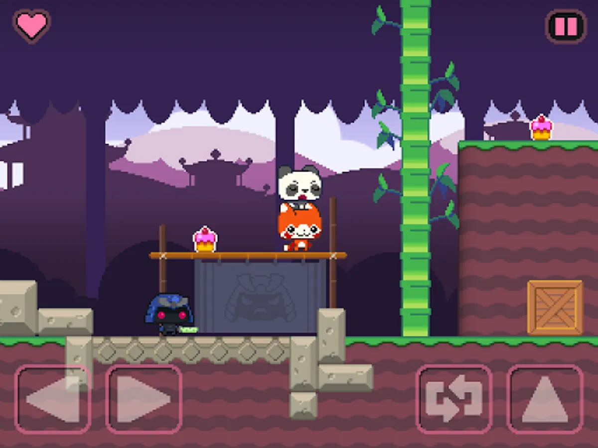 Swap-Swap Panda is a cute platform game where two pandas go on an adventure to take back the cupcakes stolen by some pesky ninjas. You will cross a wonderfull land full of bamboo forests, fantastic sights, and hazards.