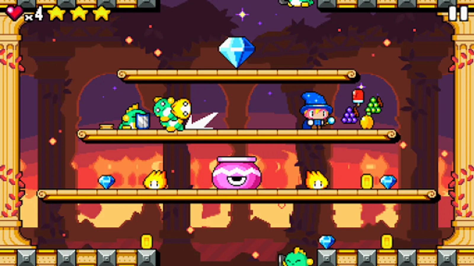 Drop Wizard is an action arcade game where you play as Teo, a wizard on a quest to save his friend turned into stone by an evil warlock. Clear all the levels, face dangerous bosses, collect power ups and score epic combos.