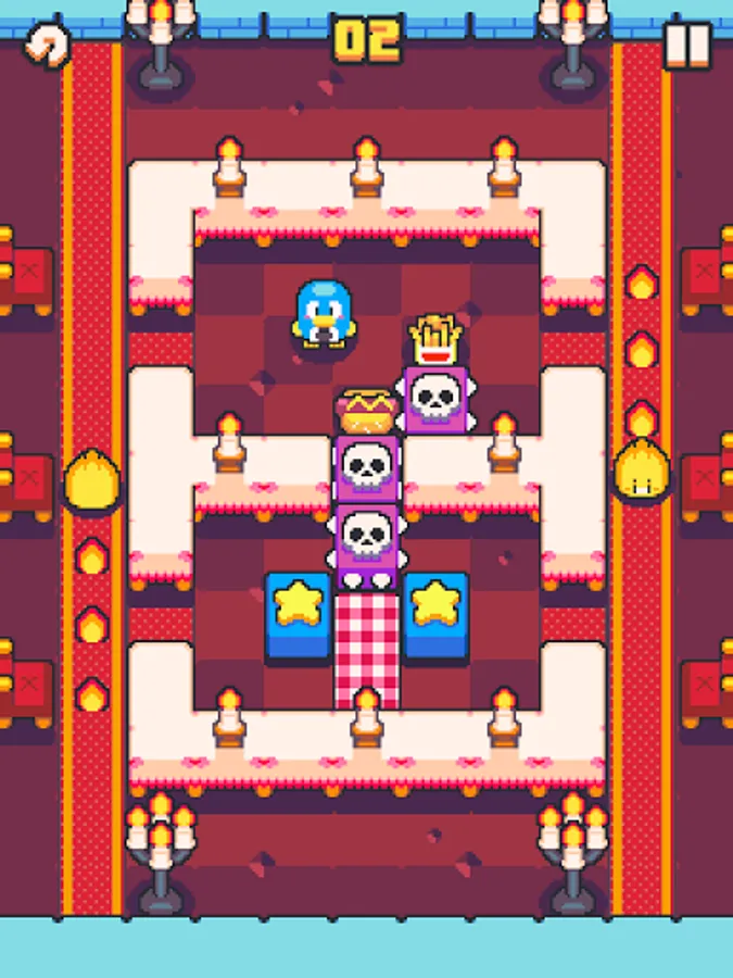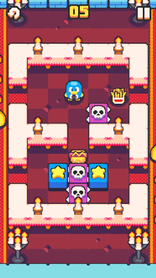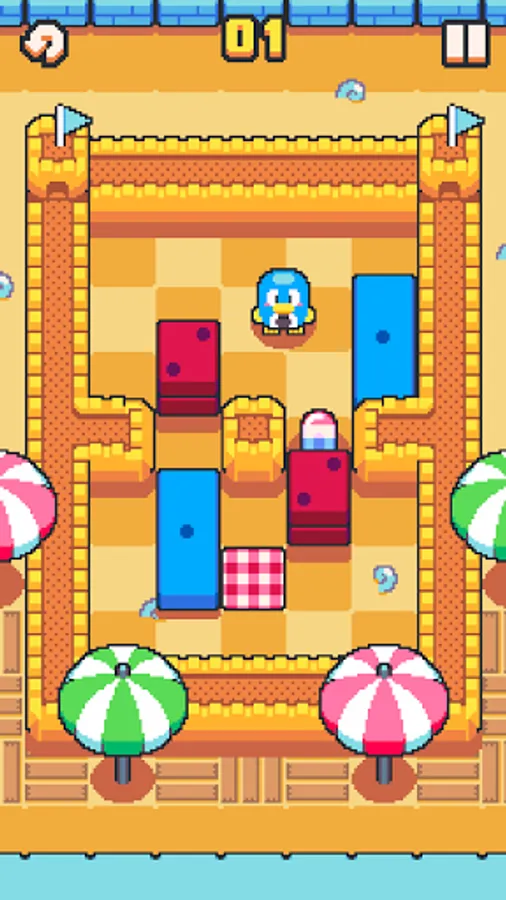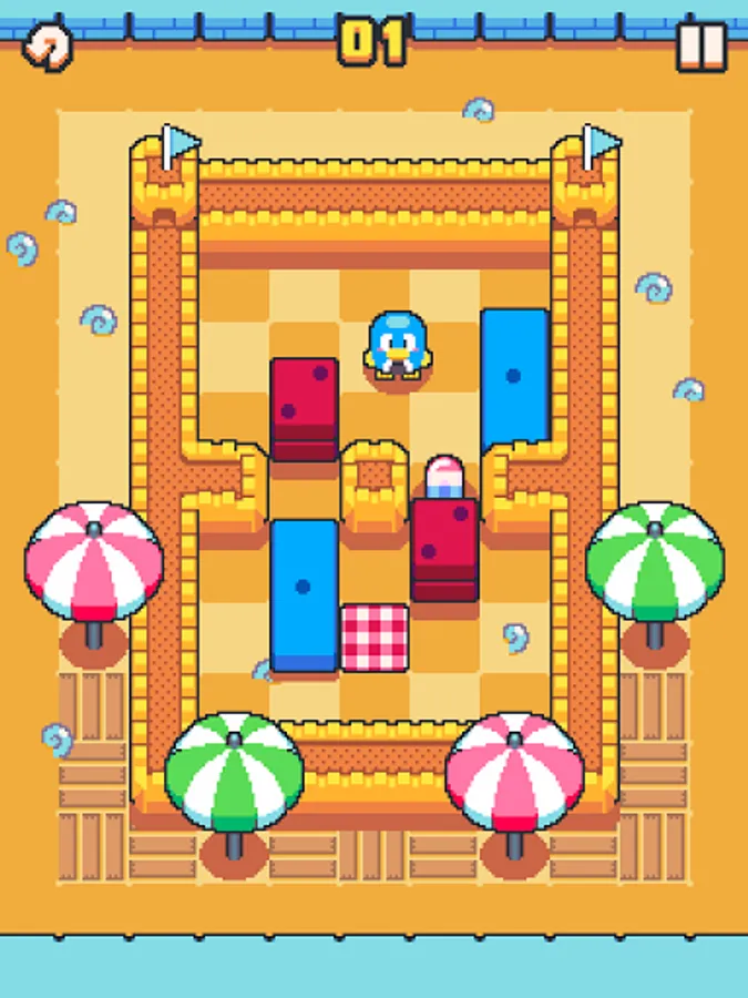 It's picnic time! Help the penguin to push tasty treats onto the picnic blanket. In Picnic Penguin you can push multiple blocks at a time and rearrange them to open the path and complete the levels. Picnic Penguin is a real treat to enjoy in your spare time! Picnic Penguin features several worlds to unlock with a huge variation of puzzles to solve while finding coins to collect all the skins on the gashapon machine.