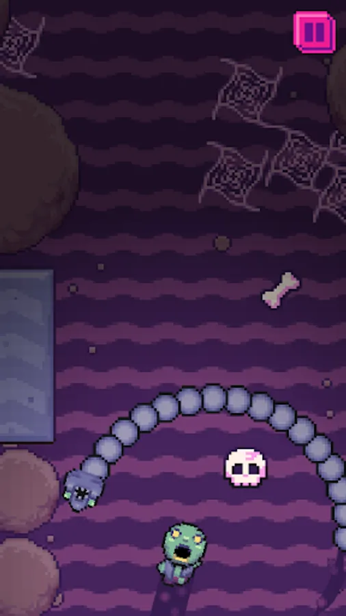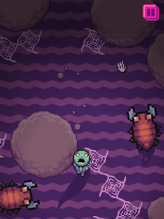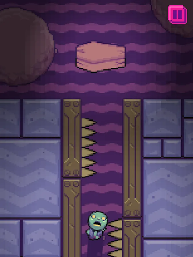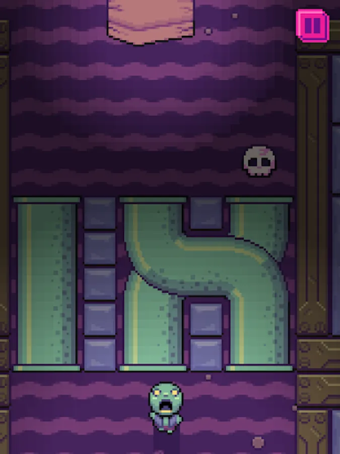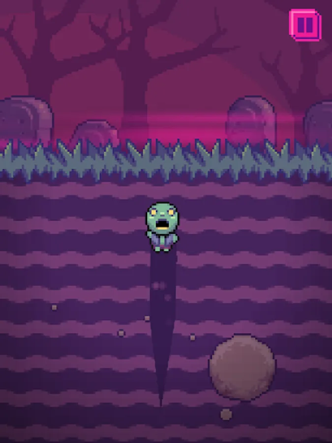 Help the zombie reach the cemetery while avoiding all the enemies and obstacles. Zombie Goes Up is a super fun casual game to play at Halloween or any time. Warning: spoopy content inside! In Zombie Goes Up you'll face giant cockroaches, snakes, werewolf moles, mines, and many others spooky creatures crawling in the dark, ready to block your path to the top. In each level you'll have to collect all the bones scattered in the cemetery in order to complete the skeleton. Each level features a different skeleton with a funny hat on its skull. Play Zombie Goes Up alone or with friends while you spend a nice Halloween together. Zombie Goes Up features easy one hand controls, lovely retro graphics, cool chiptunes, spooky levels, and genuine casual arcade fun.