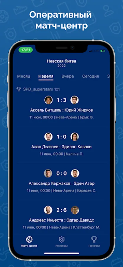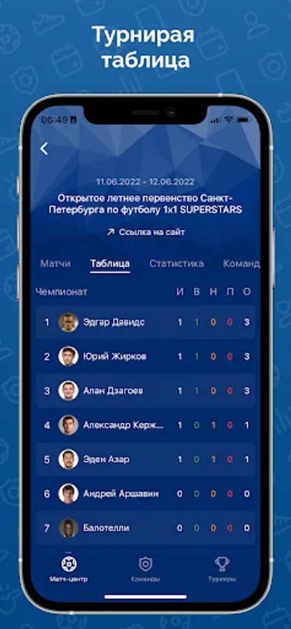 Take part and follow the tournaments of the new format of everyone's favorite game: 1-on-1, special mini-platforms 6x12 m, small gates, match duration 2 minutes (rapid attacks on average only 8-15 seconds!), each participant will take part at least 6-7 matches. The application allows you to be aware of the schedule and results of games, see the standings.