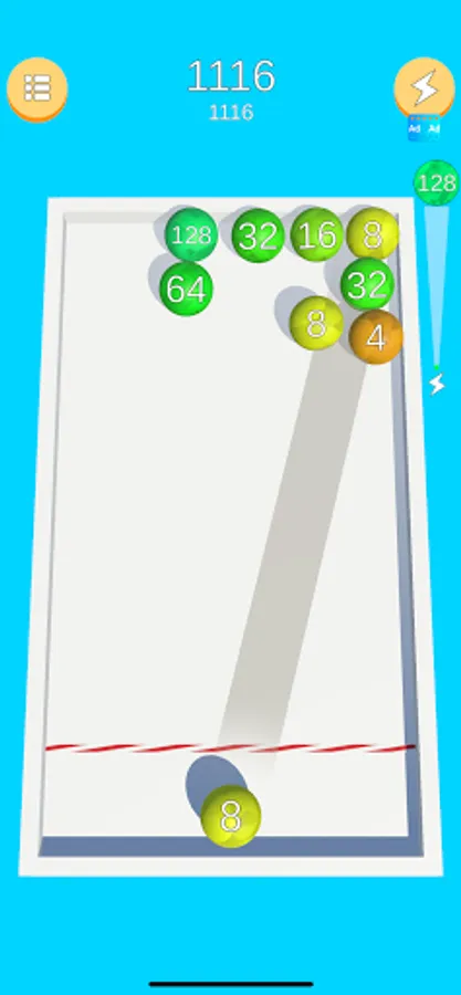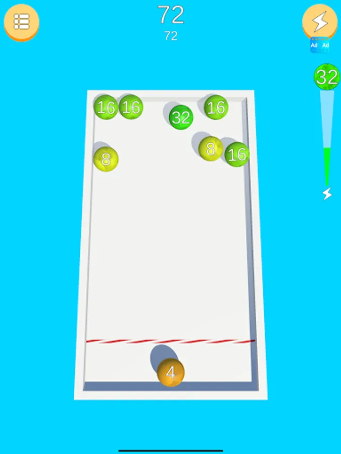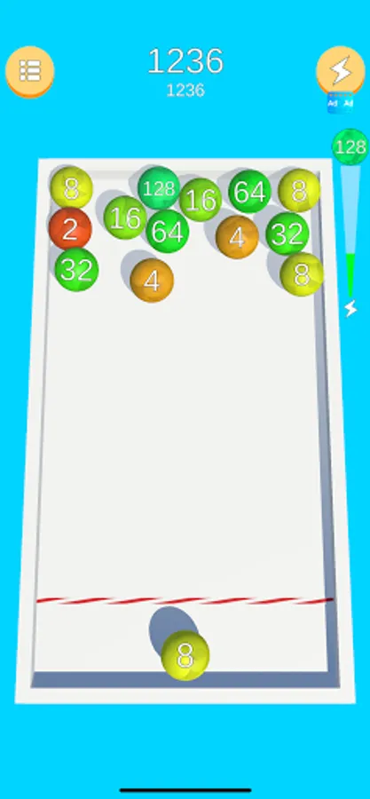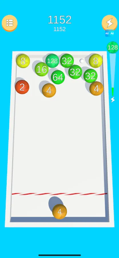 An excellent puzzle with moving balls. Your task is to combine balls with the same numbers. Get the largest number. 1024, 2048, 4096 ...
