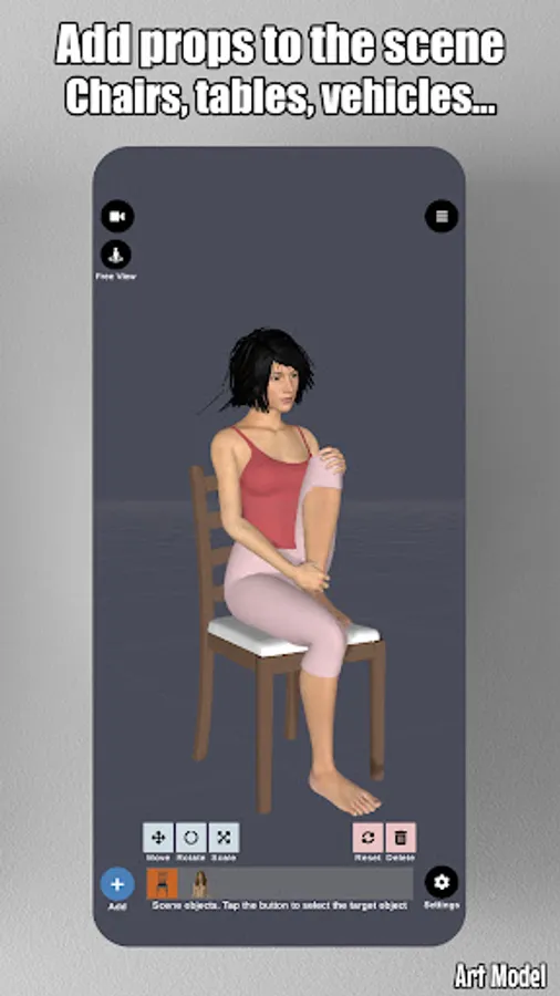 Now you can enrich the scene with props! You can add chairs, tables, weapons, vehicles, trees and geometry shapes to scene. You can also attach props directly to models hands. Props then follows hand movement.
