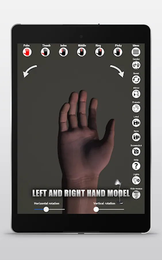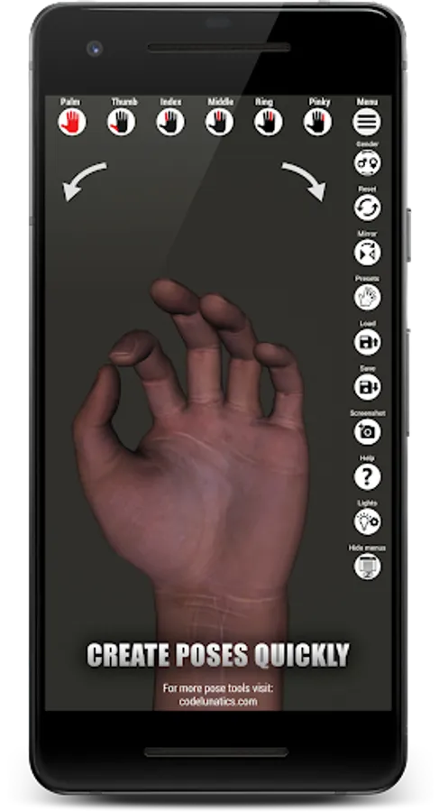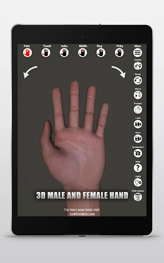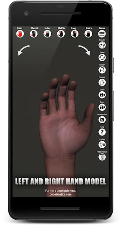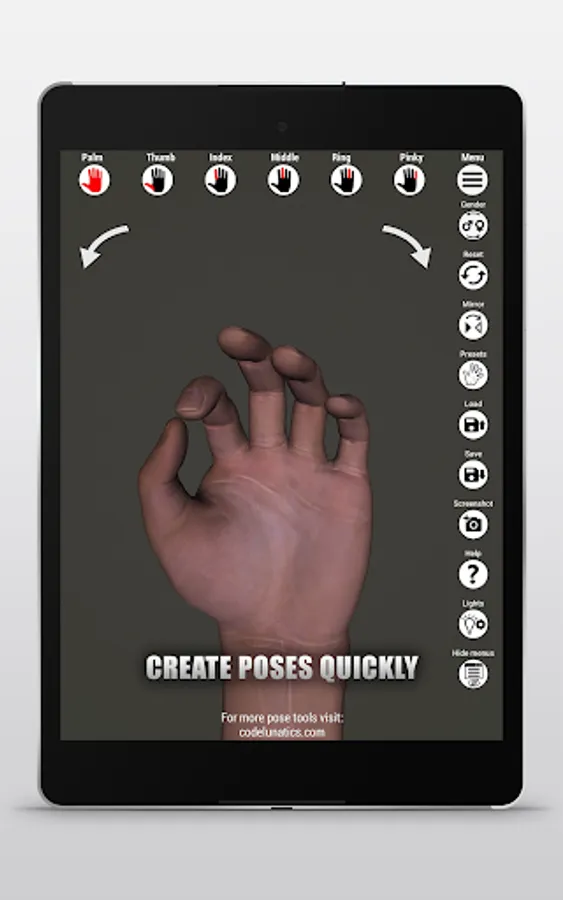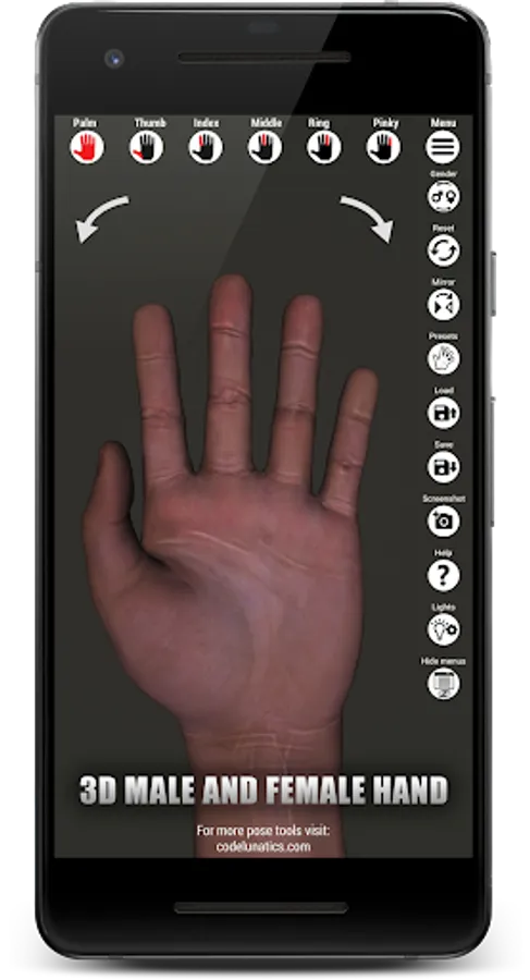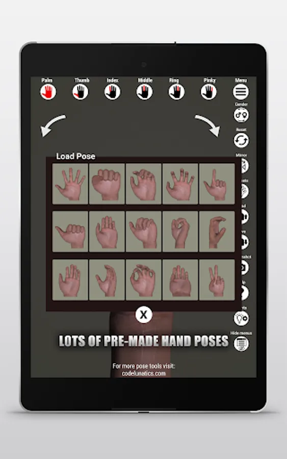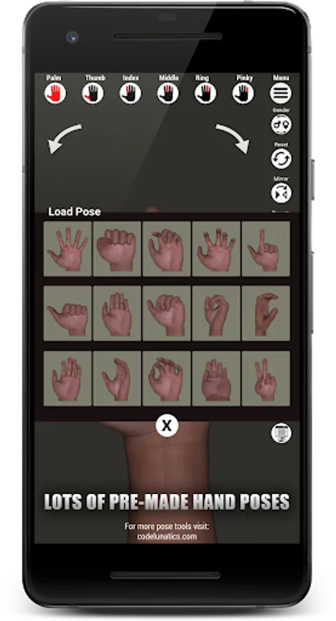App has male and female hand models and variety of pre-made hand poses to get started with.