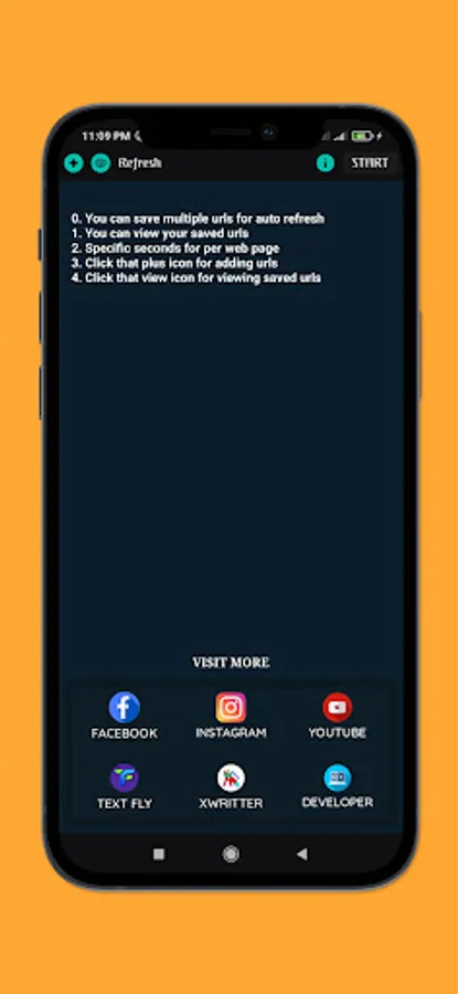By using this app you can automatically refresh your web page with specific seconds.This app also works on background means while running your task you can use other apps.