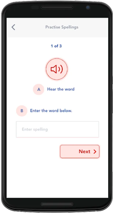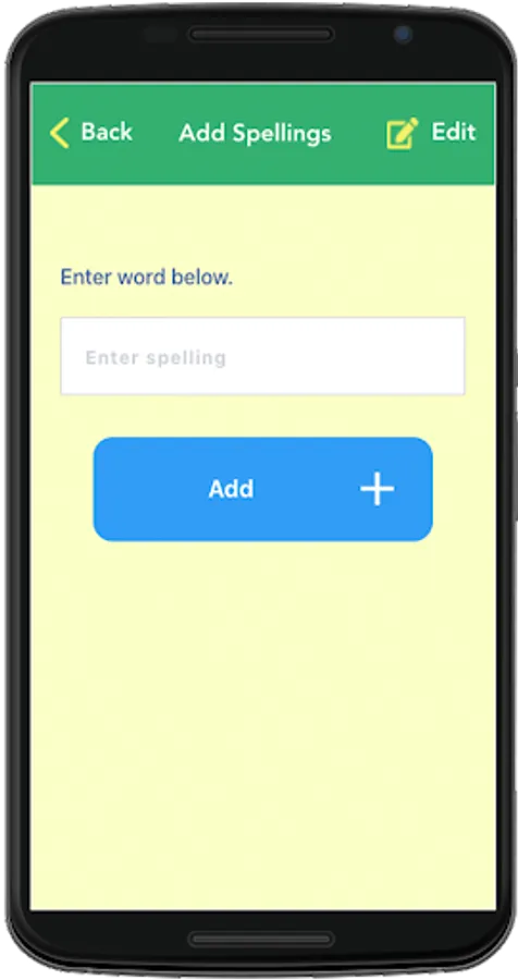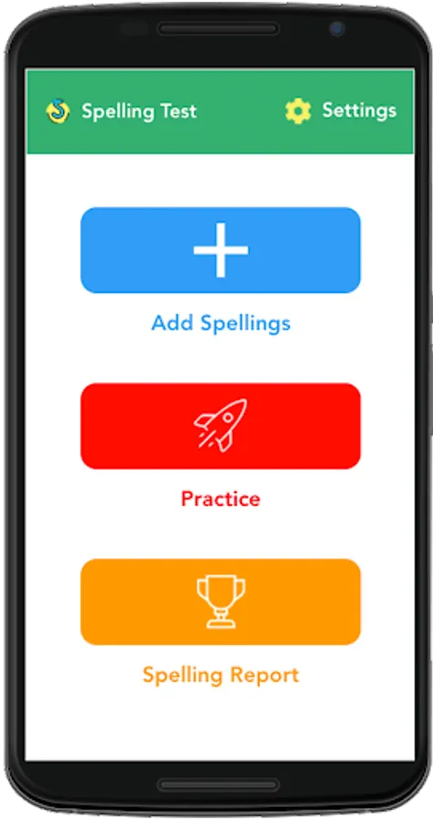 The app helps you practice your spelling test. This app lets you enter your own spellings.
