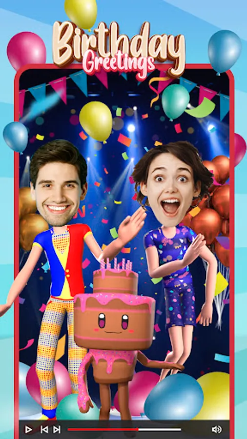 Are you looking for a unique and fun way to celebrate your birthday? Then you have to try our app! With it, you can create fun video clips to share with your friends and family. Simply select a birthday scene that suits your tastes, add a 3D model of your face, write your personalized birthday message, and voila! You'll get a personalized and fun birthday video in seconds.