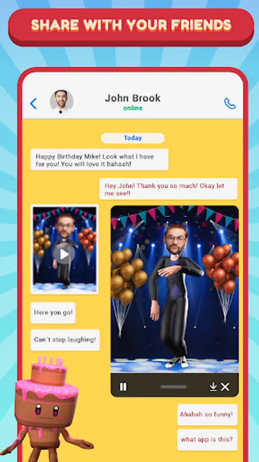 Best of all, you can share your customized videos on your favorite social media platforms with just a few clicks. So what are you waiting for? Download our app now and make your birthday an unforgettable celebration. Surprise your friends and family with fun personalized birthday videos and become the star of your special day!