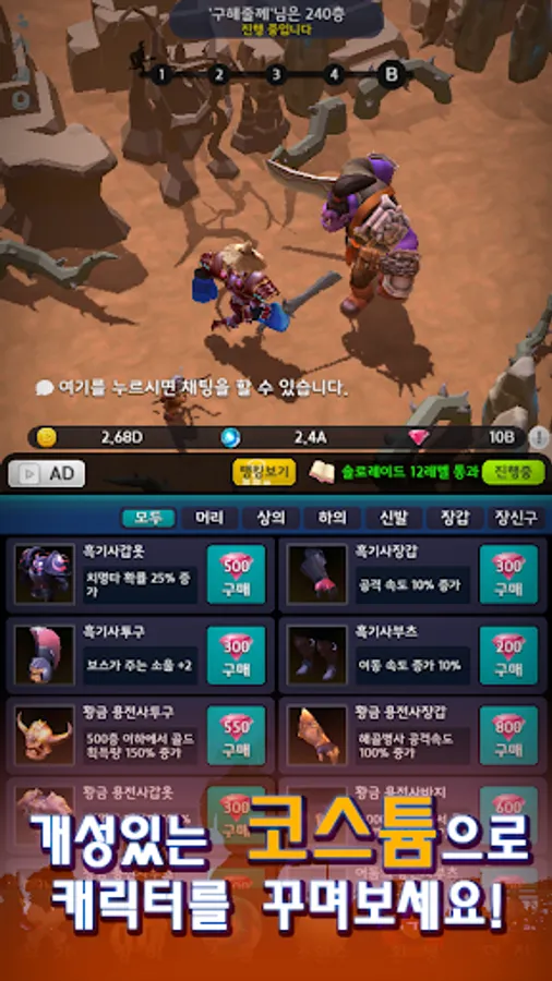 2. You can customize your own unique character by wearing the purchased equipment and weapons.