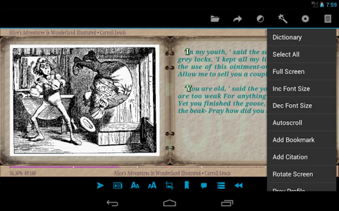 Program is designed for reading fiction book.