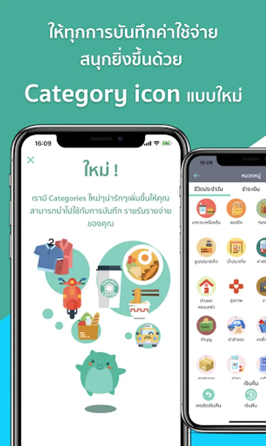 - ระบบ Category icon ที่หลากหลาย และสามารถแยกประเภทค่าใช้จ่ายตาม Category
