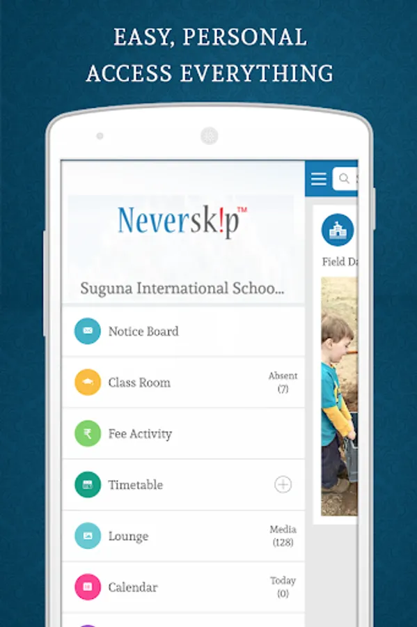 Note: This app needs a minimum android version of 6.0. If the app is not compatible with your device, please login through the Parent Portal https://parent.neverskip.com using your Registered Mobile Number.