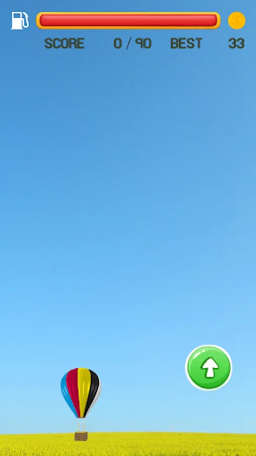 Tilt your phone to the right / left and press down the fuel button to lift up your Hot Air Balloon as much as you can. Do not fly higher or go lower than your phone screen.